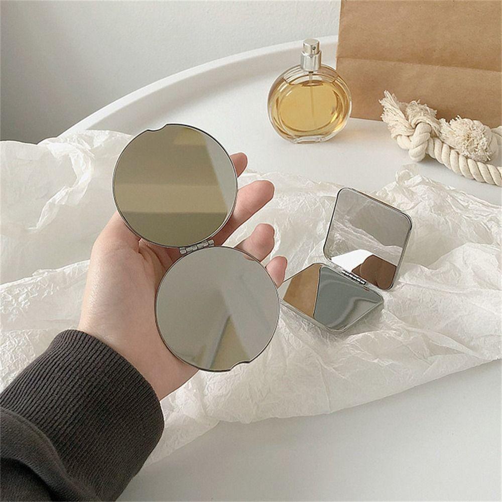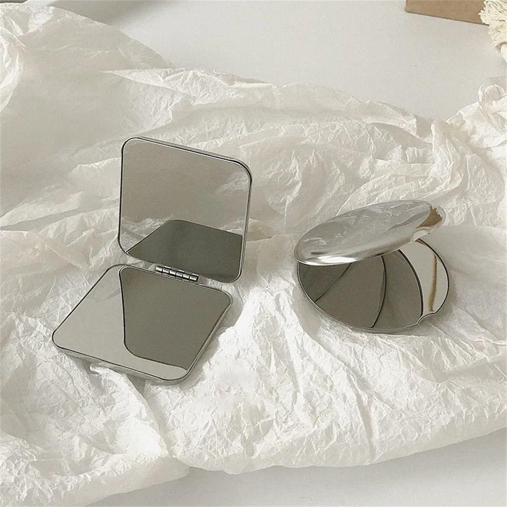 Зеркало для макияжа из нержавеющей стали, карманное, двухстороннее, квадратное, мини, маленькое, складное, для женщин и девочек
