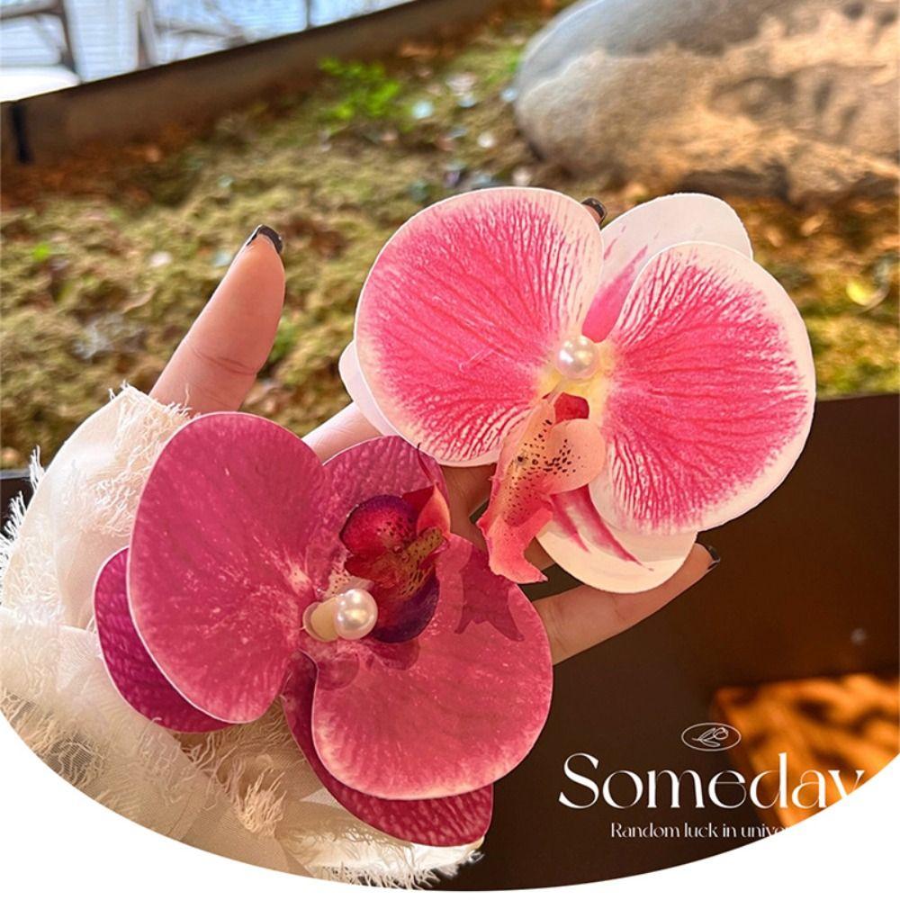 Тканевая заколка для волос в виде цветка, заколка для волос в виде бабочки, орхидея, жемчужная орхидея, заколка для волос в виде цветка, заколка-уточка, корейский стиль, заколка для волос для девочки