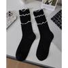 Женские тонкие модные носки с кружевом, однотонные, со швом, с вертикальным рубчиком, бесшовные, до середины икры