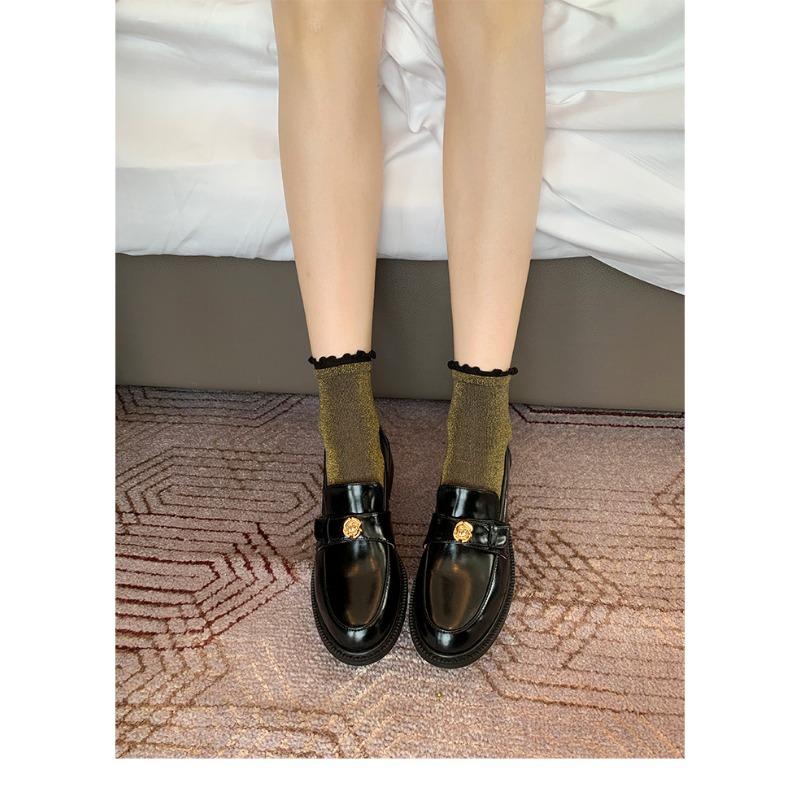 Цельная коровья кожа~ толстая подошва камелия маленькие кожаные туфли, женская маленькая золотая пряжка, одна педаль, ленивые с юбкой, натуральная кожа