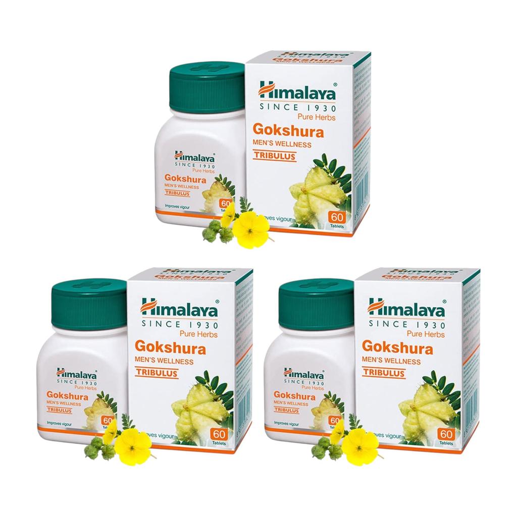 Himalaya Растительные средства 3 x Таблетки Гокшура для поддержки силы и выносливости – по 60 штук в каждой – Усилитель производительности на растительной основе - Всего 180 таблеток