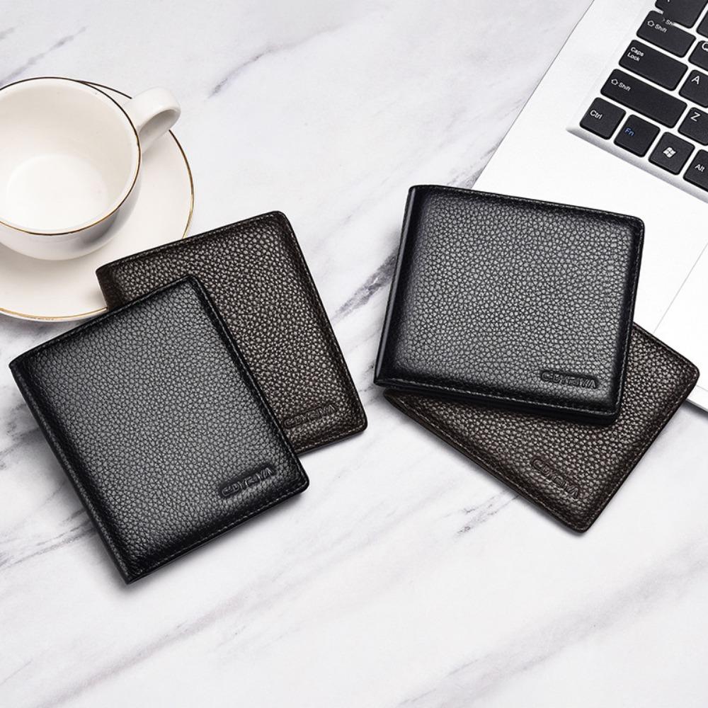 Кожаный кошелек Мужской Короткий Тонкий Кошелек для мелочи Визитница Простой Кошелек из коровьей кожи первого слоя