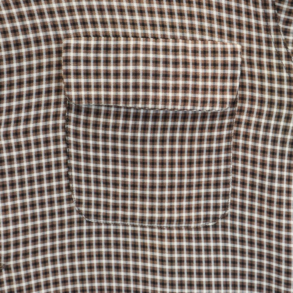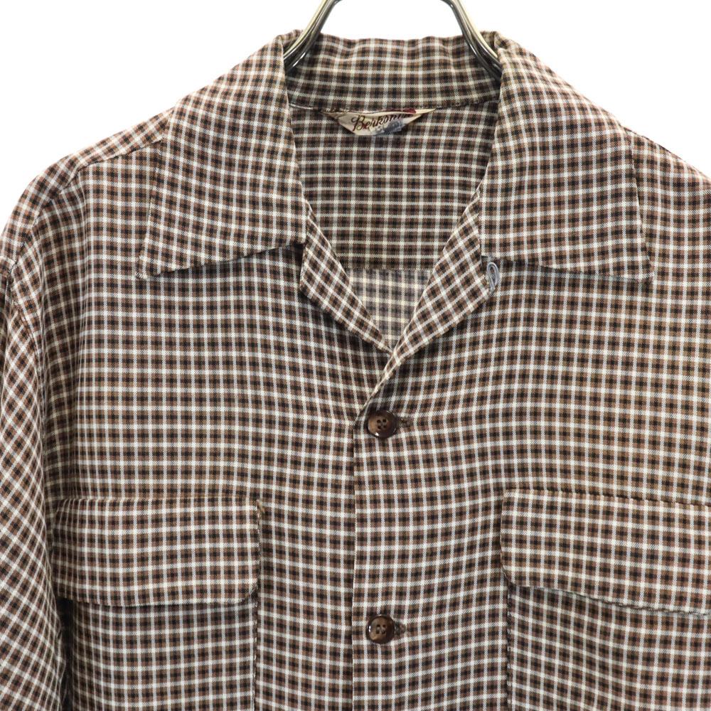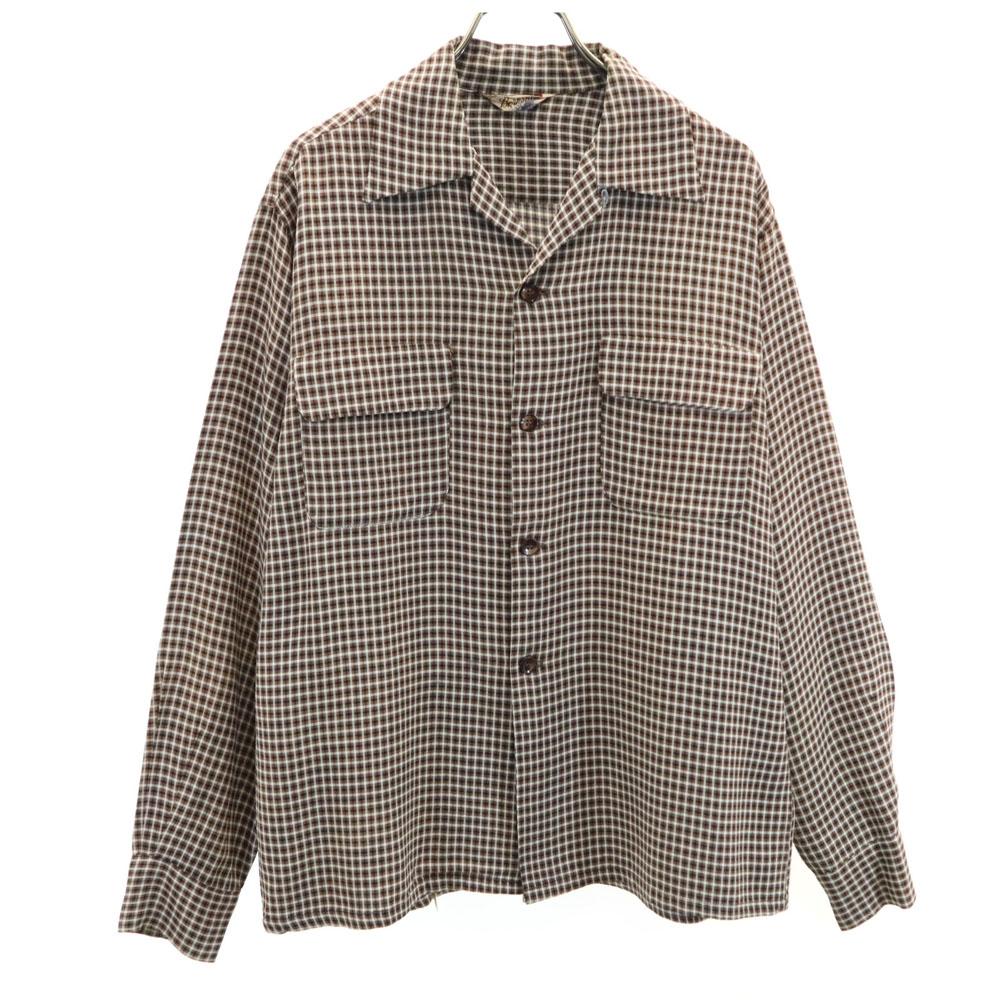 Это винтажная рубашка с открытым воротником 50-х - 60-х годов. Материал неизвестен. С левой стороны есть небольшой разрыв, а по низу подола написаны метки и цифры.. Перед покупкой, пожалуйста, поймите, что это бывший в употреблении товар.