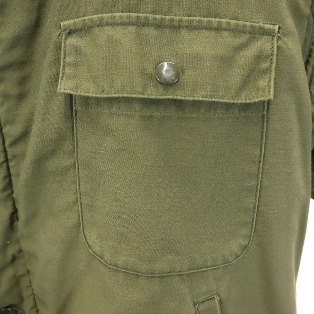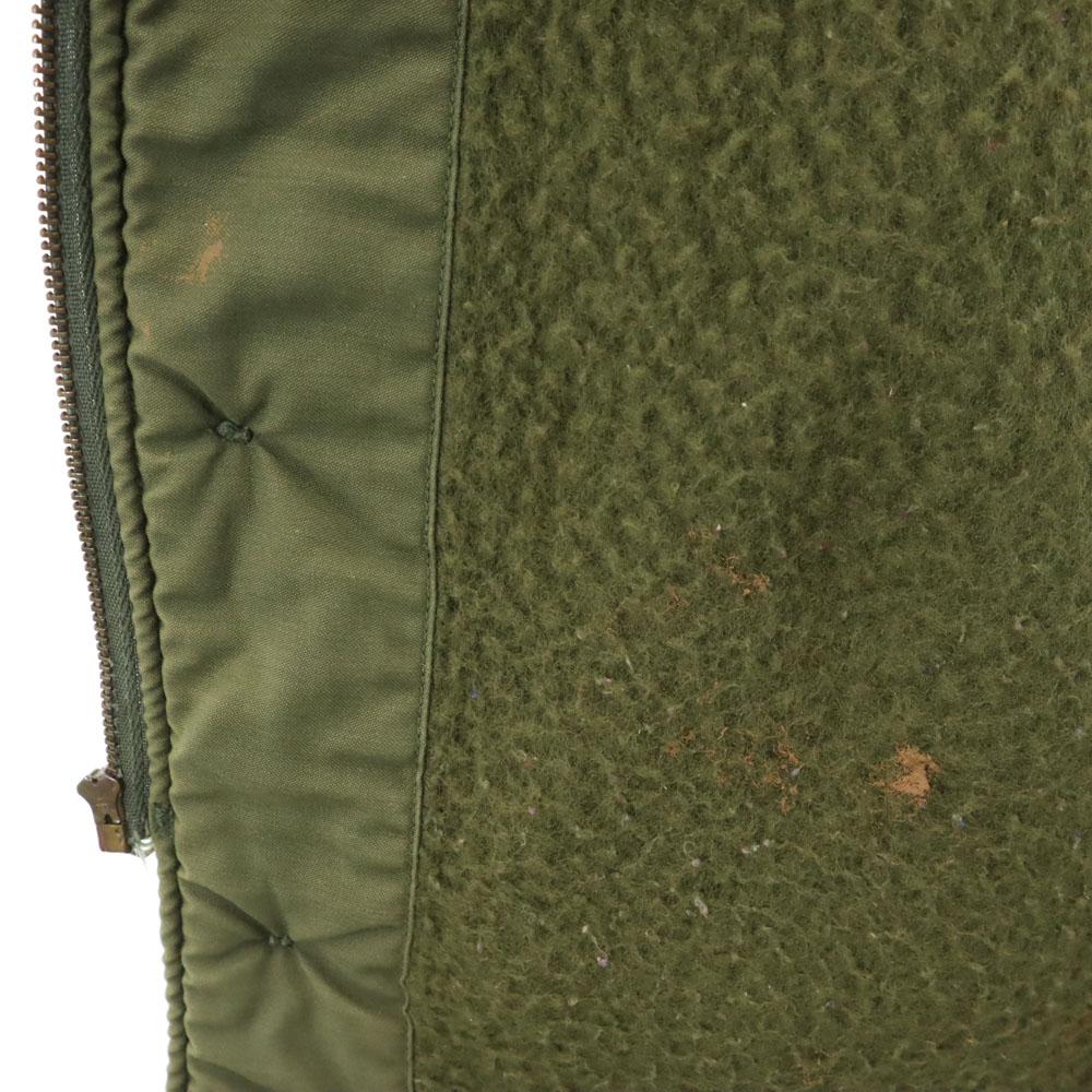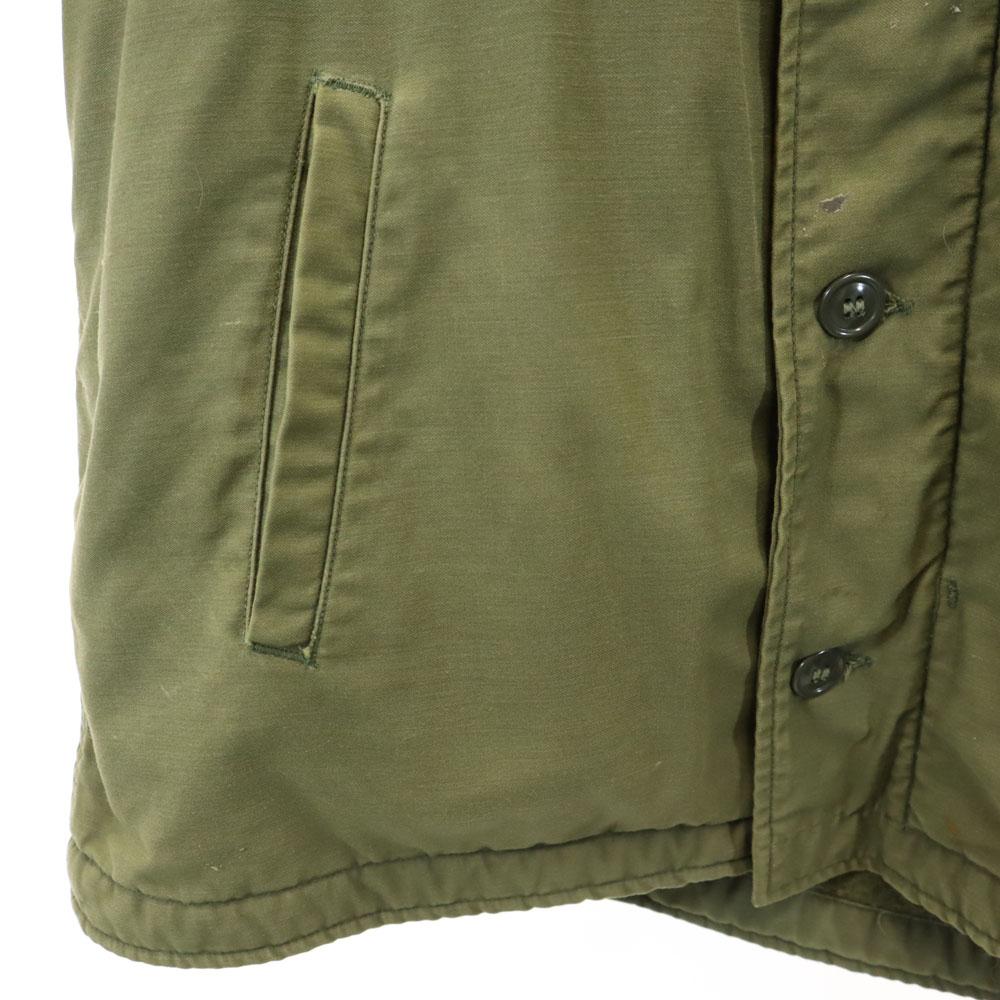 This is a 70's US Navy A2 deck jacket. Material unknown. Overall rubbed and faded. Stain around the neck and in some places, peel on the cuffs, and a hole in the back. Please understand that this is a used item before purchasing.