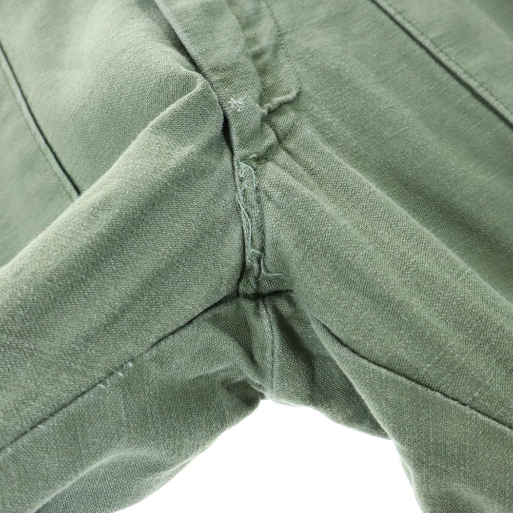 Это хлопковые сатиновые брюки пекаря армии США 1970 года. Категории размеров являются приблизительными. Пожалуйста, сверьтесь с фактическими размерами.. Брюки были заужены и перешиты. Дырка в промежности, пух повсюду и легкая грязь. Пожалуйста, поймите, что это одежда, бывшая в употреблении, перед покупкой.