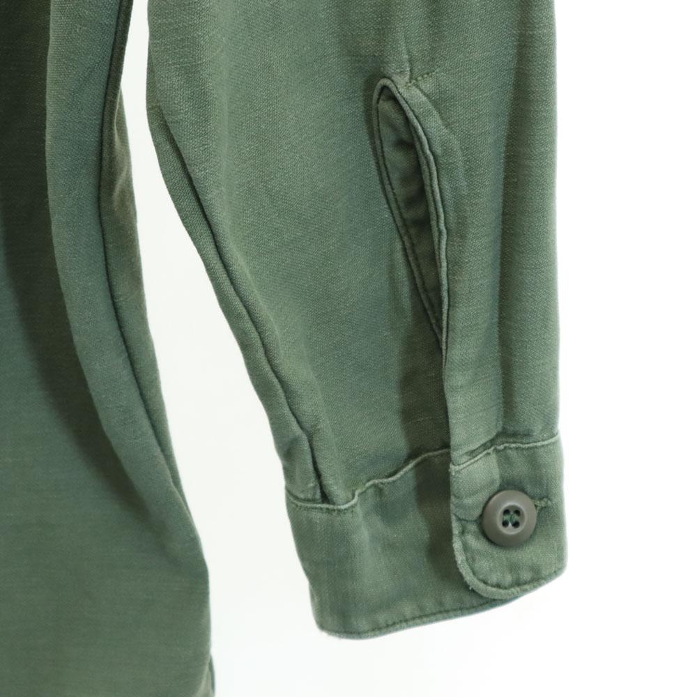 This is a 1967 US military cotton satin BDU. The size category is a guide. Please refer to the actual size. There is peel, stain, and discoloration throughout. Please understand that this is a used item before purchasing.