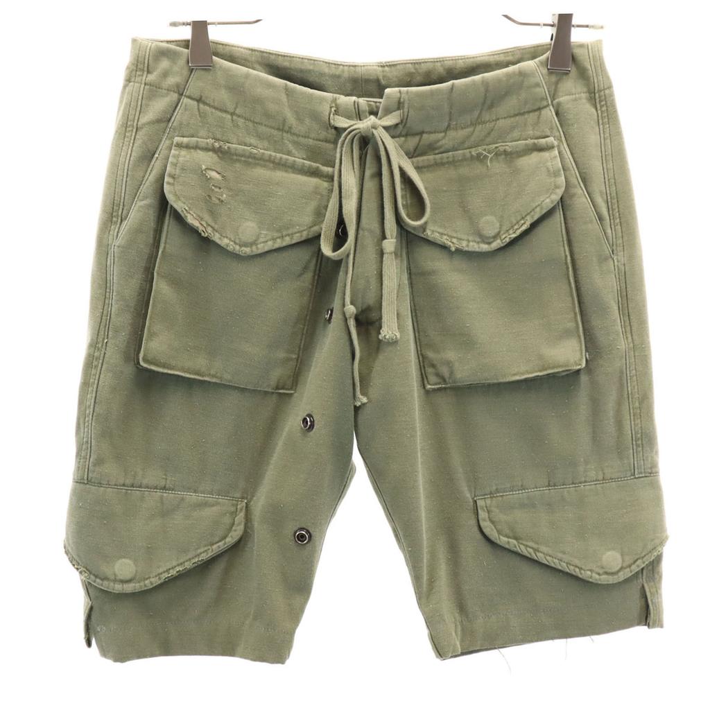 Первоначально разрезаны и перешиты в длинные брюки. На карманах есть шелушение, по всей поверхности катышки и выцветание.. Пожалуйста, поймите, что это одежда, бывшая в употреблении, перед покупкой.
