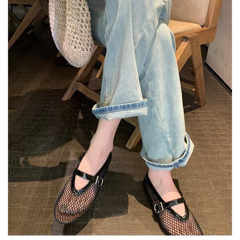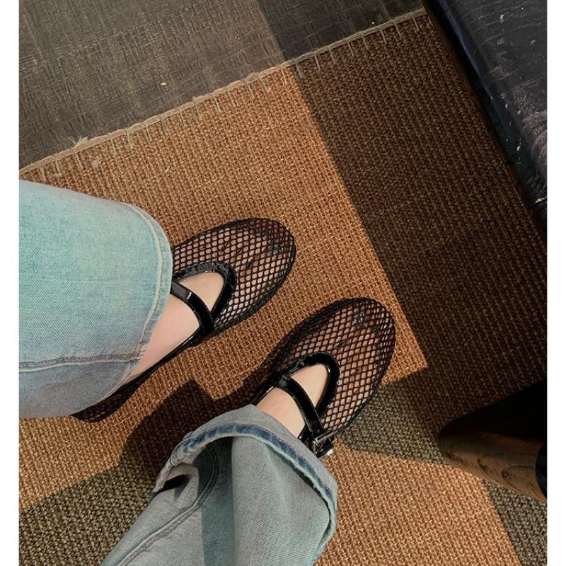 Женские летние сандалии из кожи с перфорацией, с ремешком на щиколотке, с круглым носком, на плоской подошве, с мелким вырезом, туфли Мэри Джейн