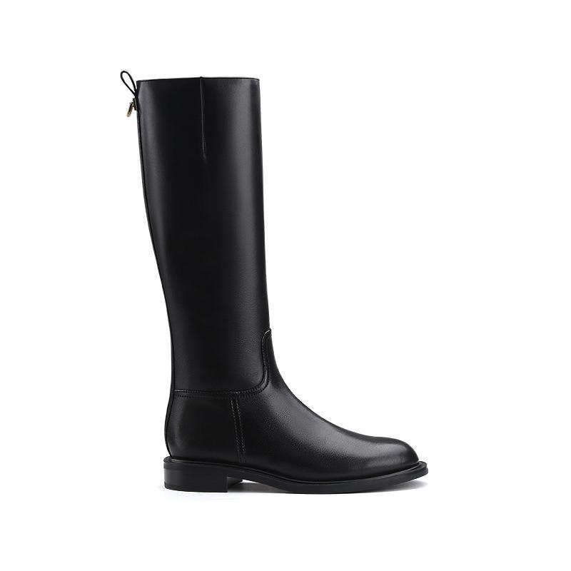 Версия из овчины~ Кожаные ботинки-рыцари с круглым носком и золотой пряжкой на толстой подошве, женские осенне-зимние высокие ботинки, толстый каблук, тонкие ботинки, длинные ботинки