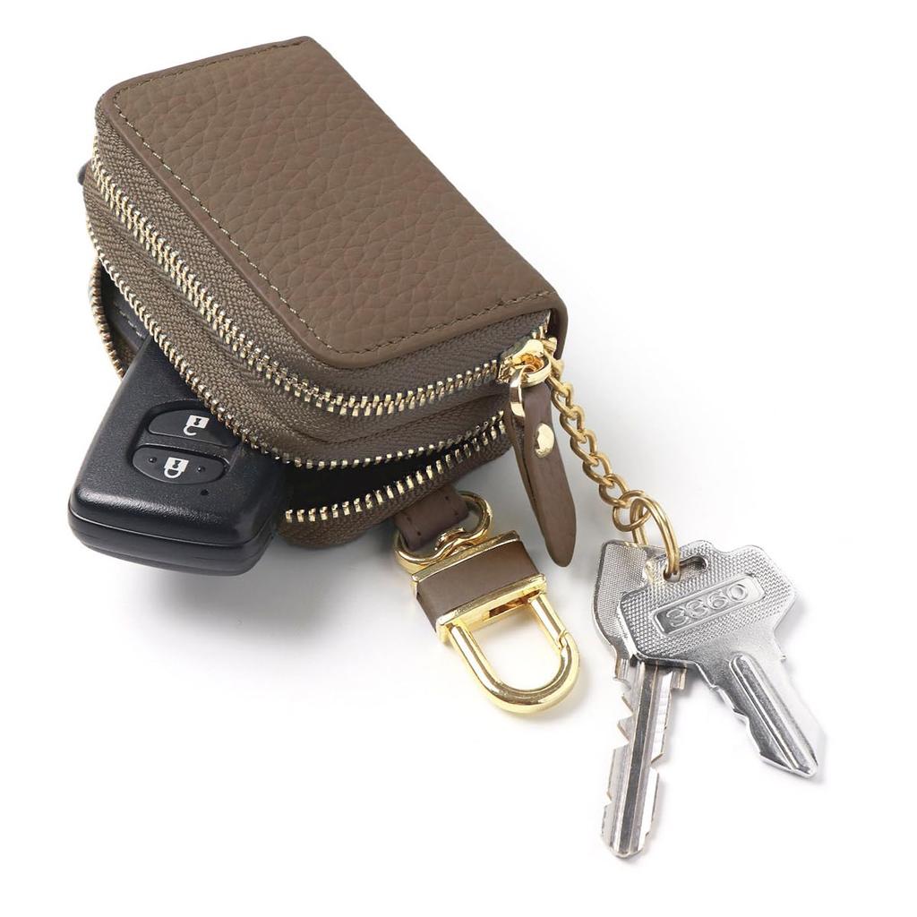 Blanc Pomme Smart Key Genuine Holds 2 Double Mocha Case, Leather, Keys, Zipper, Keyless, Women's, bp-2010,