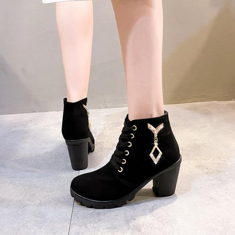 Большого размера короткие ботинки женские осенне-зимние новые женские ботинки на высоком каблуке на толстой подошве-маффин модные ботинки
