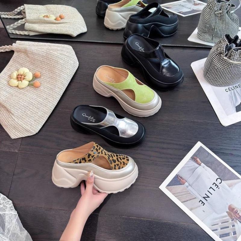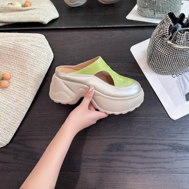Маленькие тапочки с толстой подошвой и закрытым носком, новая женская обувь на платформе, для улицы, ленивые тапочки