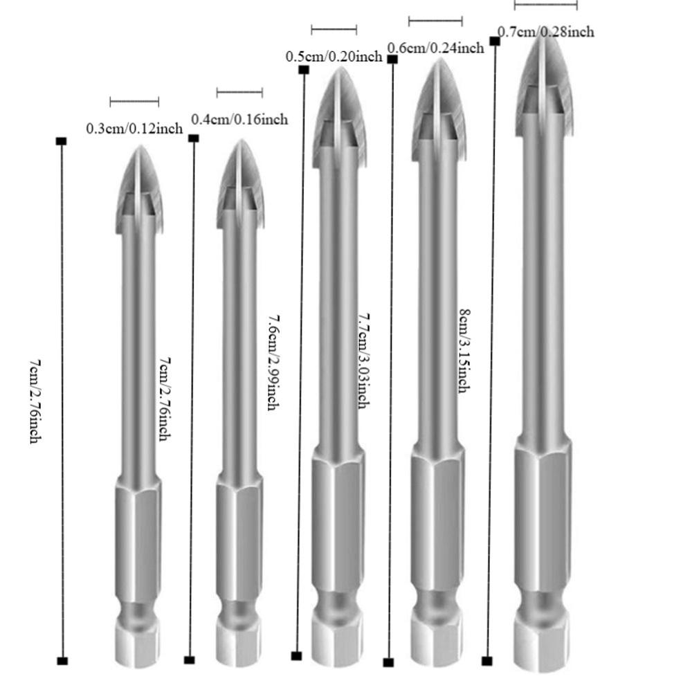 5Pcs Four Side Carbide Drill Bit Wear-resistant Cross Hex Drill Triangular Drill Bit Ceramic Tile