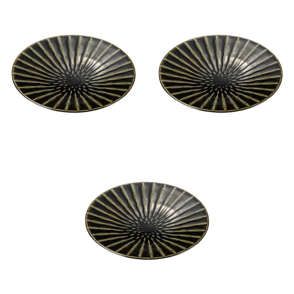 Set of 3 Focus Oribe Ring Double Plates x Large Ceramic Plates by Setomonohonpo 9.5 [30.3 4cm]