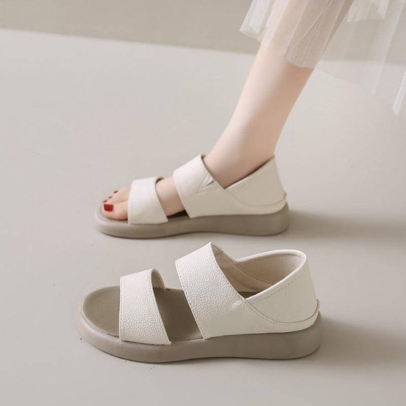 Мягкие кожаные сандалии на плоской подошве женские летние новые ретро с круглым носком женская обувь два способа носки легкая обувь