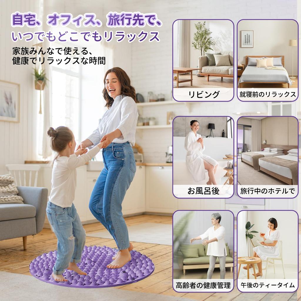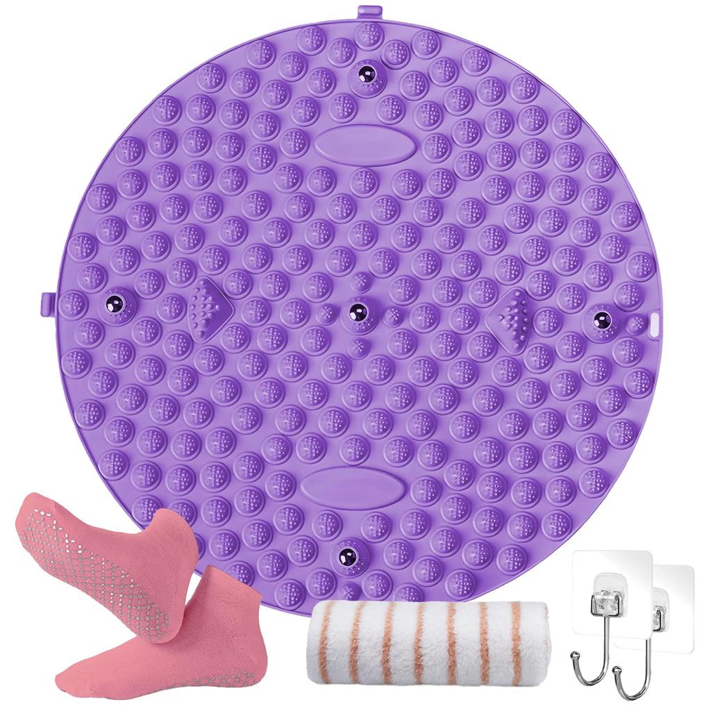 [Профессиональный коврик для рефлексологии стоп] Этот набор из пяти ковриков для рефлексологии стоп безопасен для начинающих! Входящие в комплект толстые носки для йоги и полотенце обеспечивают мягкую, регулируемую стимуляцию.. Большой акупунктурный коврик диаметром 37 см охватывает всю подошву стопы, а высокоэластичный материал TPE обеспечивает нужное количество давления, не вызывая при этом сильной боли.. Наслаждайтесь веселыми занятиями для всей семьи, включая игры и игры с наказаниями, чтобы начать здоровый образ жизни! Начните безболезненную рефлексотерапию! [Включает два особо усиленных нескользящих крючка] Нескользящая силиконовая поверхность прочно прилипает к полу, что делает его безопасным для всех, от детей до пожилых людей. Входящие в комплект два настенных крючка позволяют аккуратно хранить его, когда он не используется.. Складной акупунктурный коврик легко брать с собой в поездки. Идеально для быстрого ухода в ванной или на кухне. Хранение без стресса. [Подарочный набор для облегчения простуды] Всего 10 минут на коврике для рефлексотерапии стоп согреют ваши ноги! Входящее в комплект впитывающее, быстросохнущее полотенце также поможет предотвратить потоотделение.. Новая привычка для семей посмеяться и вместе потоптаться в этот холодный сезон. Стильный подарок ко Дню пожилых людей или Дню отца, это отличный способ подарить здоровье.. Защитите здоровье своей семьи этой зимой и весной. [Регулируемые 5 магнитов и рефлексологические точки] Высокоплотный материал TPE, используемый в этом рефлексологическом коврике для ног, полностью встраивает и фиксирует магниты. Специальный акупрессурный дизайн соответствует рефлексологическим точкам на стопах, обеспечивая комфортный массаж.