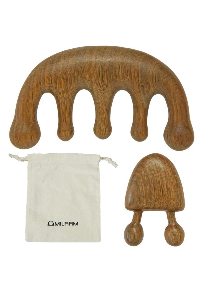MILAAM Премиальный ароматный деревянный сандаловый массажный гребень и улитка Гуа Ша Гуа Ша для и тела и лимфатической системы Удобный и гладкий на Изготовлено из