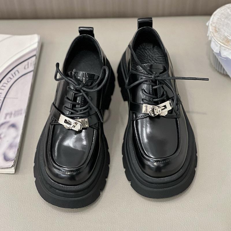 Туфли-лодочки на толстом каблуке с металлической пряжкой, женские новые туфли на платформе Мэри Джейн на шнуровке, кожаные