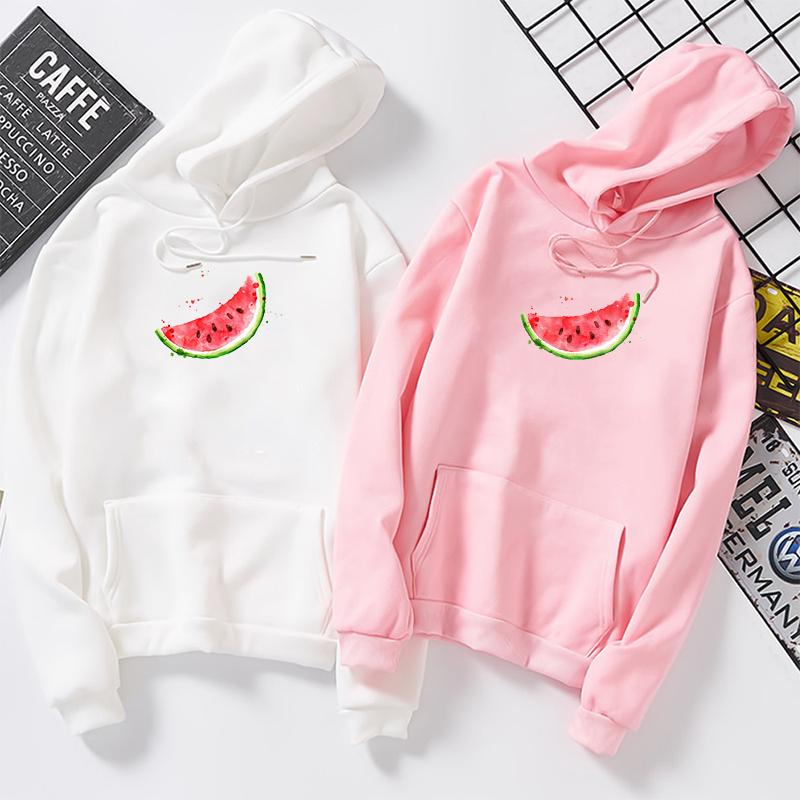 Осень Зима Толстовка с капюшоном и графическим принтом арбуза Женская студенческая Пуловер Каваий Белые Оверсайз Худи