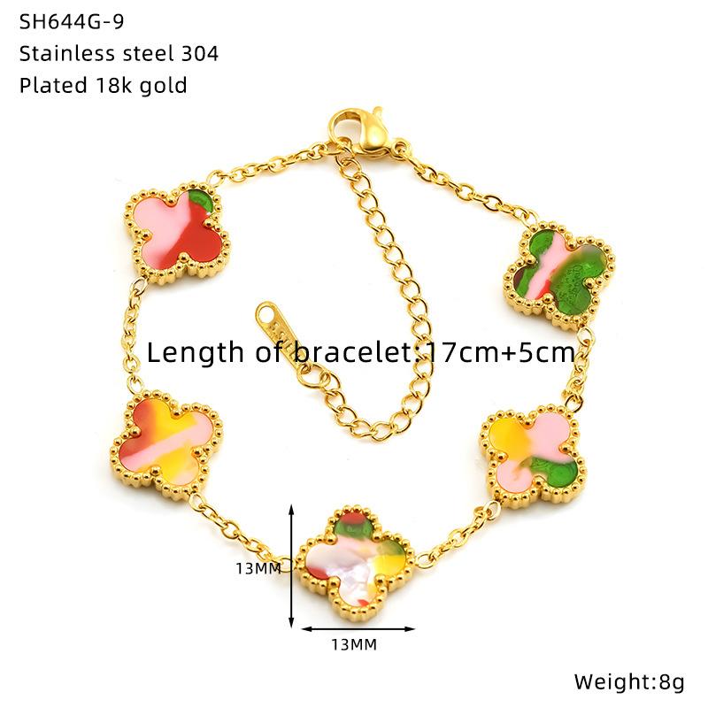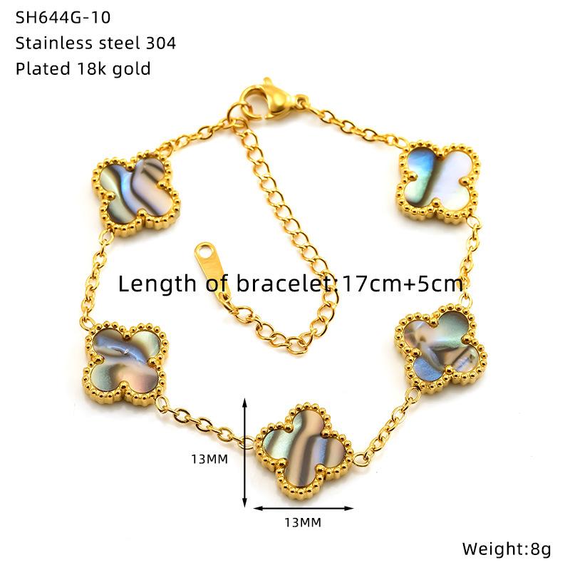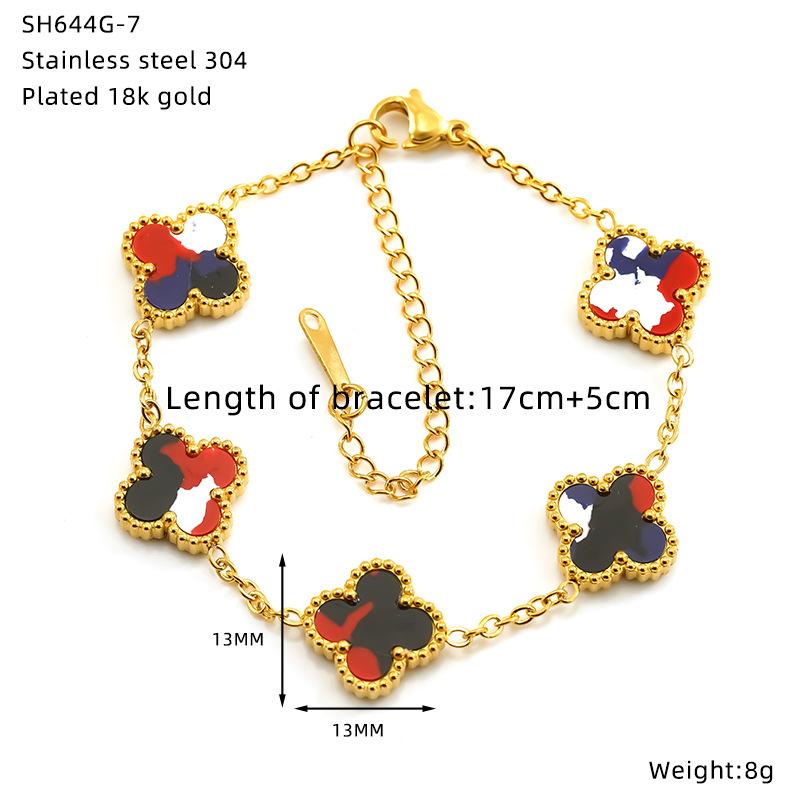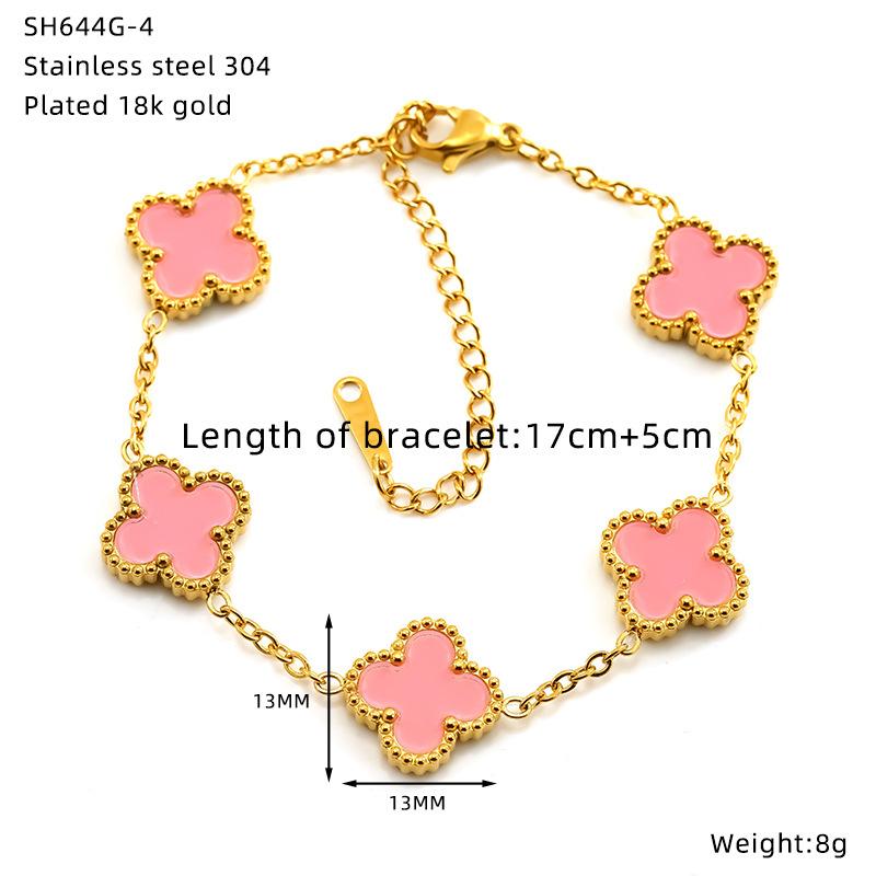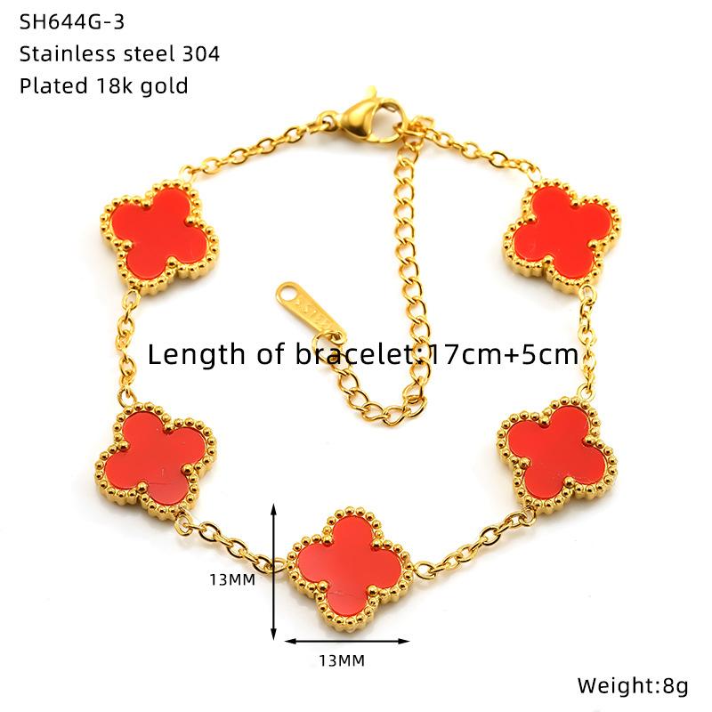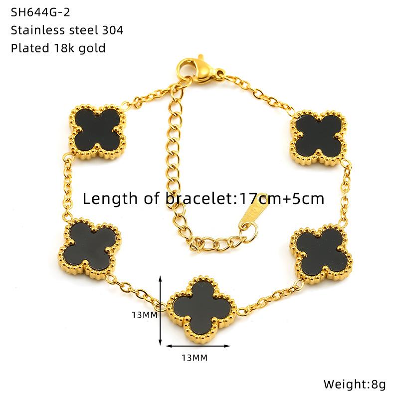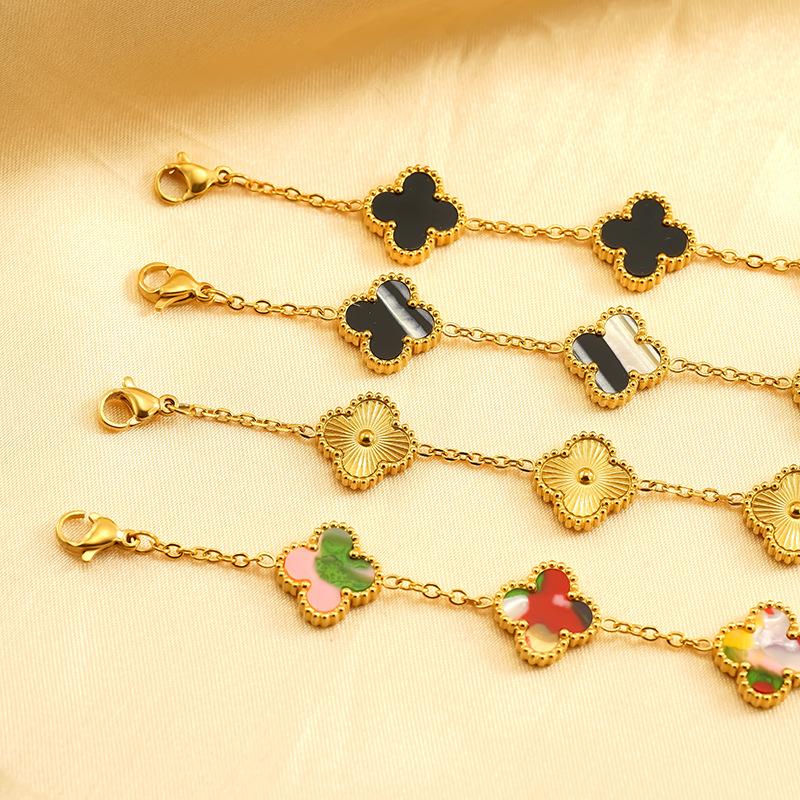 Браслет из титановой стали с гальваническим покрытием в виде цветка и четырехлистного клевера, универсальная высококлассная модная бижутерия, женский браслет