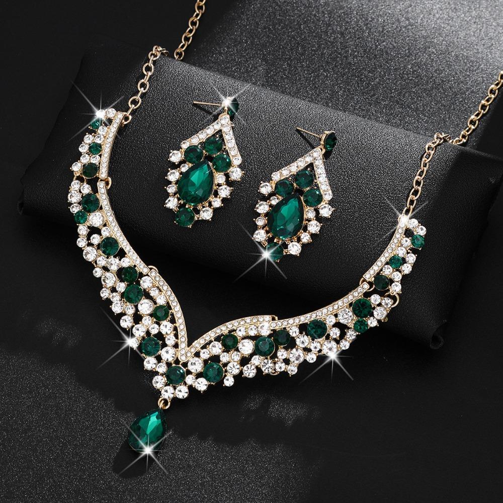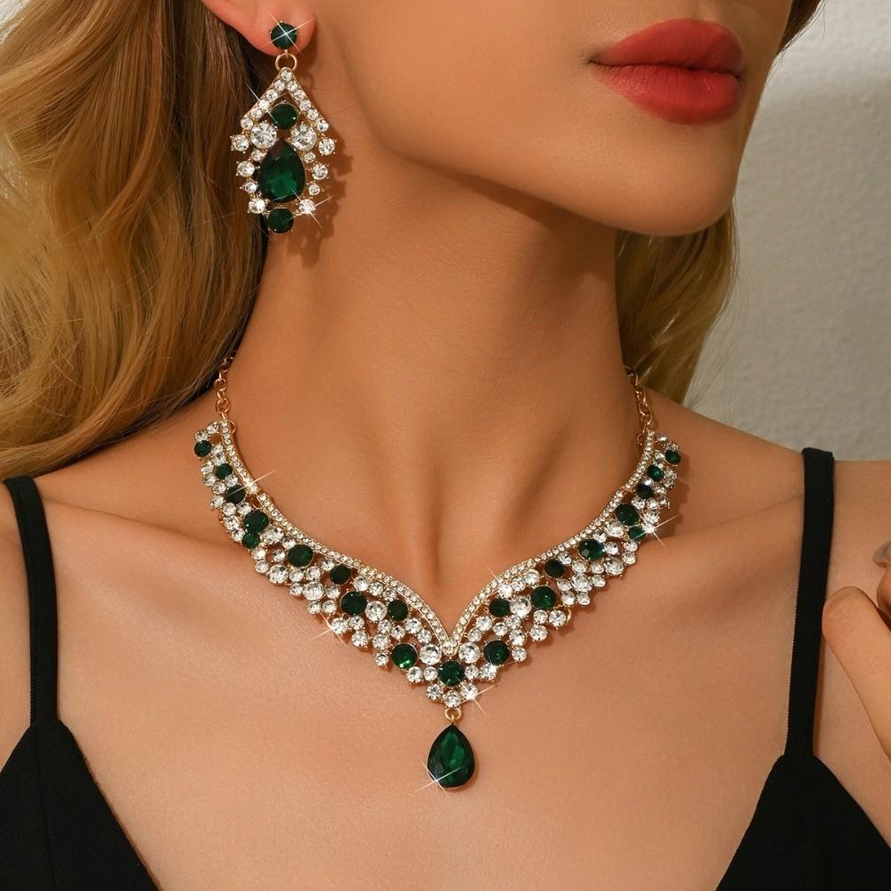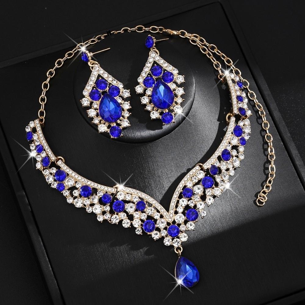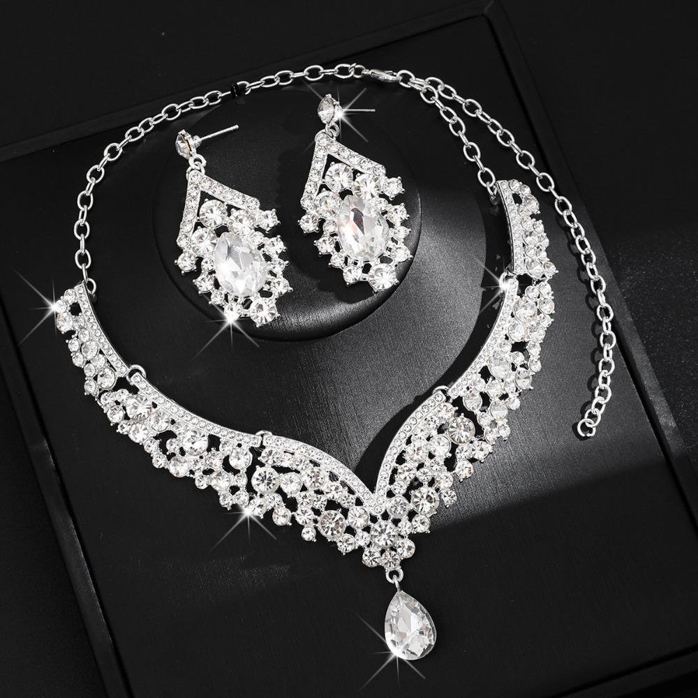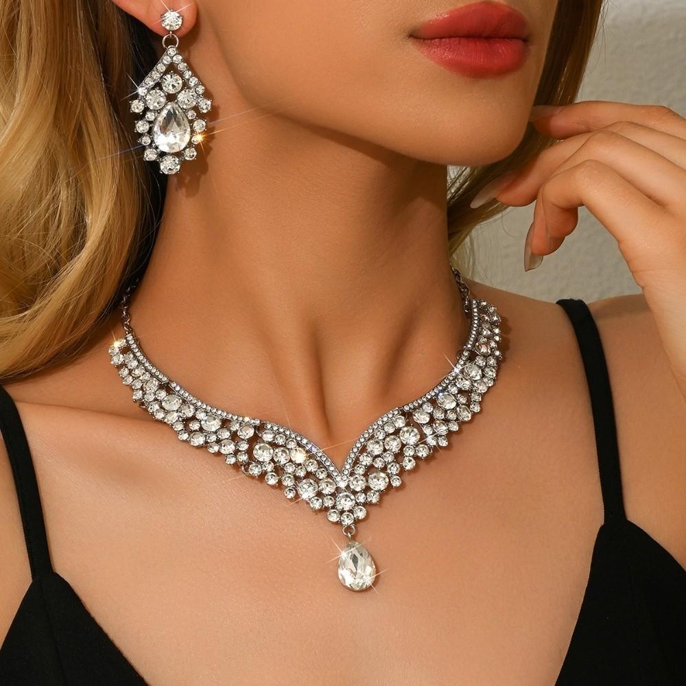 2Pcs/set Crystal Bridal Necklaces Earrings Elegant Necklace Earrings Set Banquet