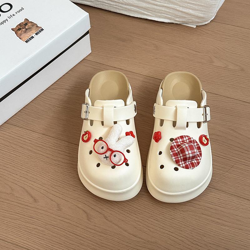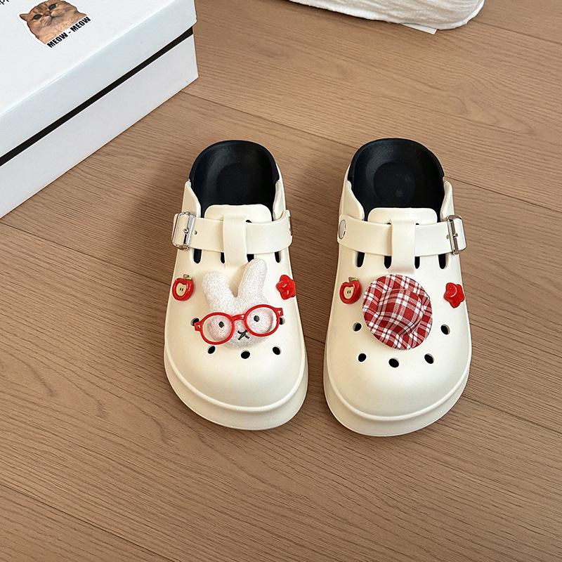 Девочки сумка-сердечко головные полушлепанцы женские новые летние мягкие милые кролик Миффи уличные сандалии с отверстиями