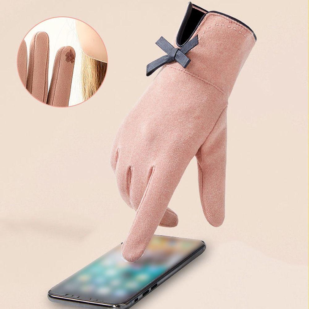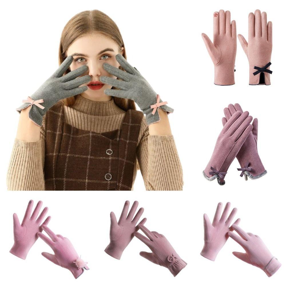 Anti-slip Plush Driving Gloves Bowknot Elasticity Soft Gloves Gift Winter Women Gloves Snowboard