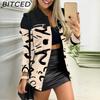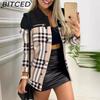 BITCED Женские винтажные повседневные куртки и пальто с решетчатым принтом, осенне-зимние куртки-поло с длинными рукавами и воротником