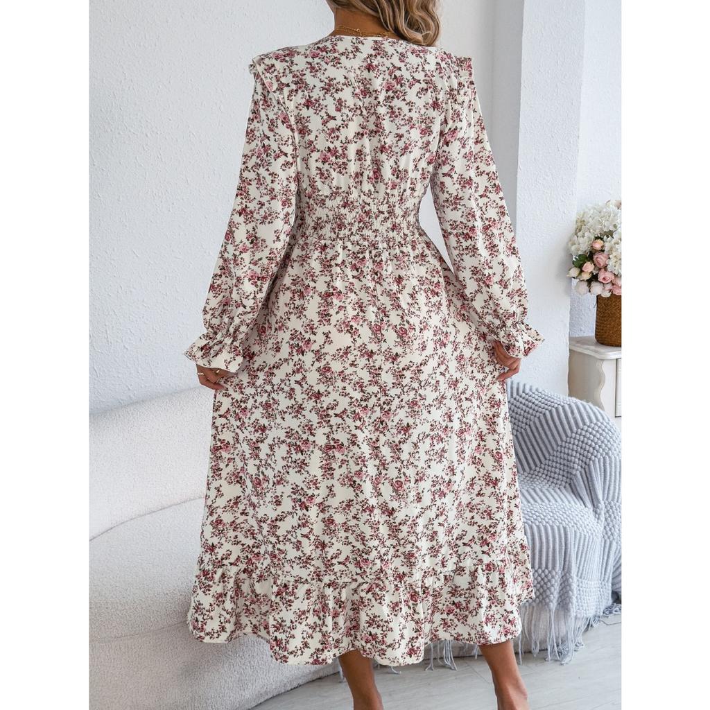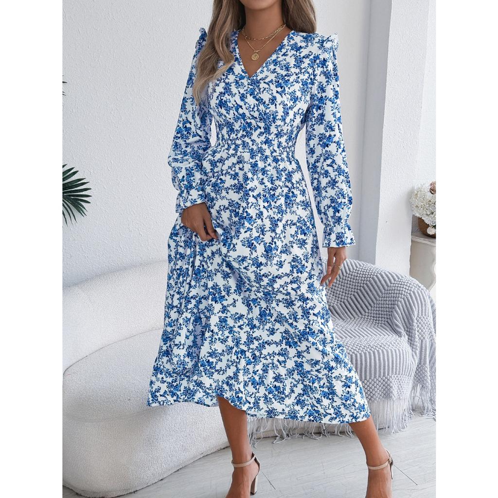HNXC Осень и Зима Элегантное Цветочное Платье-Крест с V-образным Вырезом, Присборенной Талией и Рюшами Женская Одежда