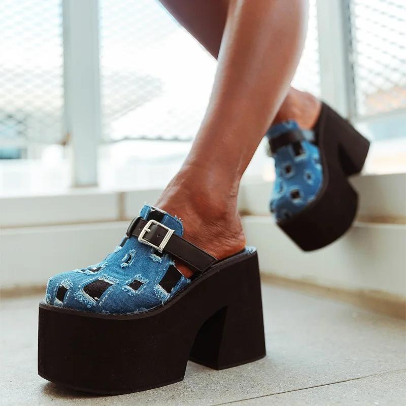 Eilyken Весенний дизайн Пряжка ремня Массивные платформенные танкетки Женские тапочки Элегантный круглый носок Квадратный высокий каблук Туфли-мюли