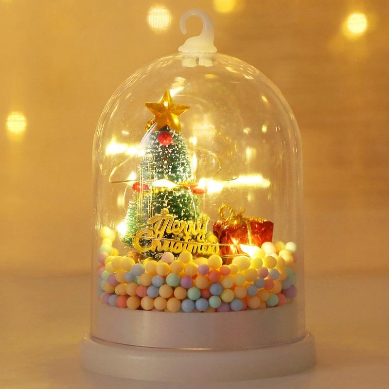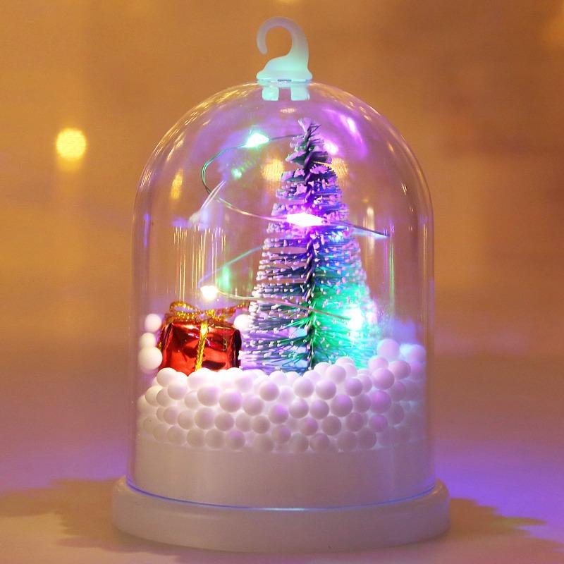 Рождественские украшения, рождественская елка, ночники, светящиеся маленькие подвесные фонарики, снежные украшения, рождественские подарки