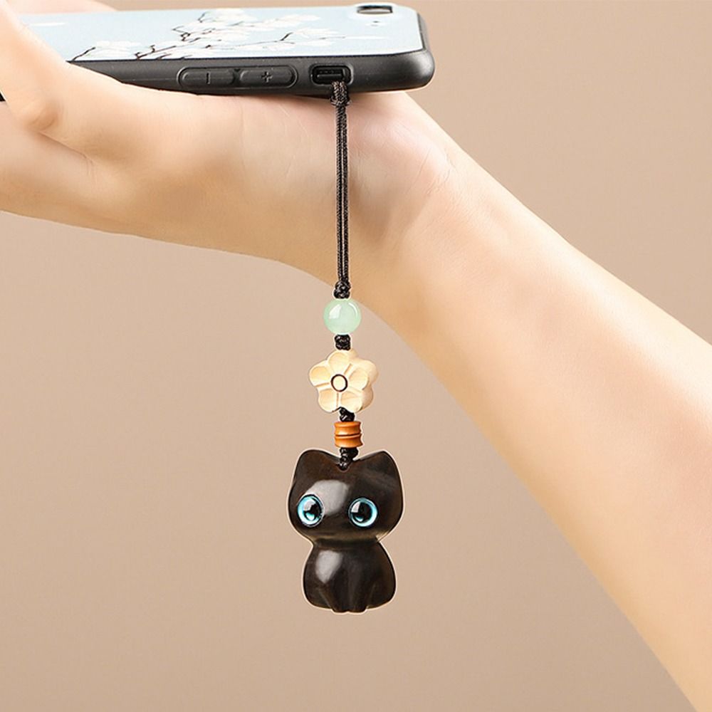 Подвеска Короткий шнурок Кольцо для мобильного телефона Подвеска в виде кошки удачи Ремешок для ключей из сандалового дерева