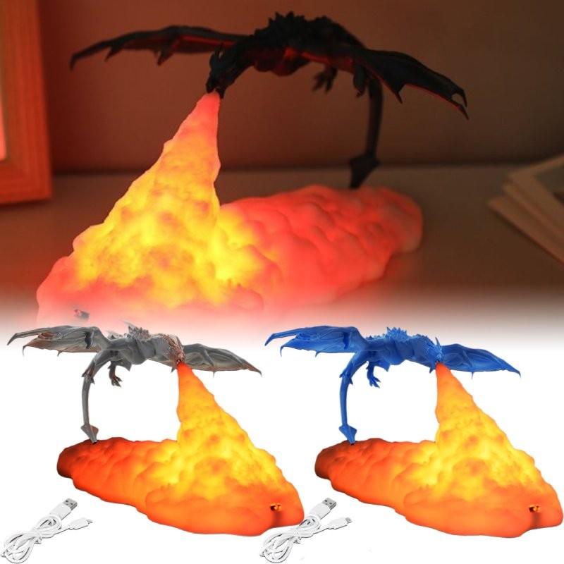 Usb Напечатанная 3d Лампа в форме Дышащего Огнем Дракона Ночник Декорация Комната