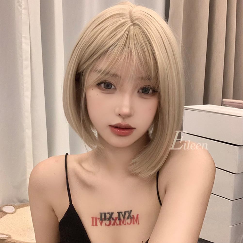 Эйлин Боб Блонд Парик Натуральный Пушистый На Ощупь Женский Парик Прямой Эффект Маленького Лица Сетка В Комплекте