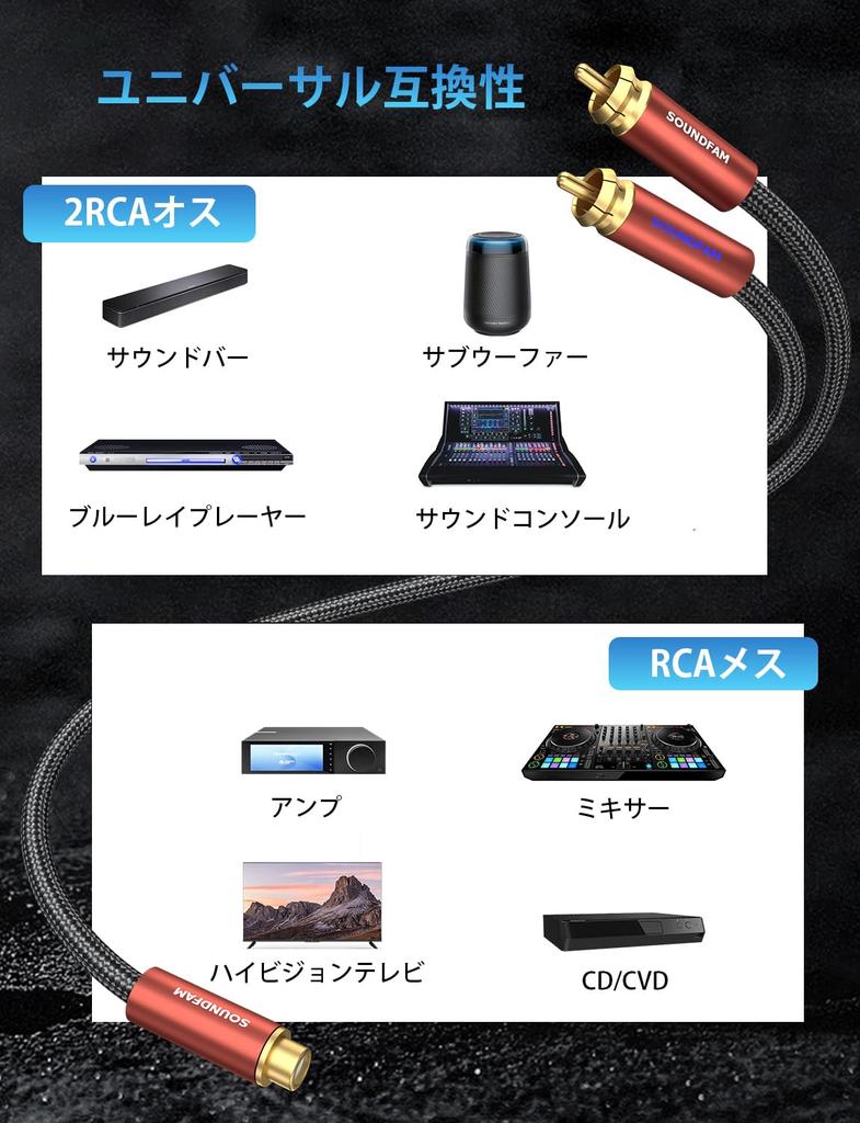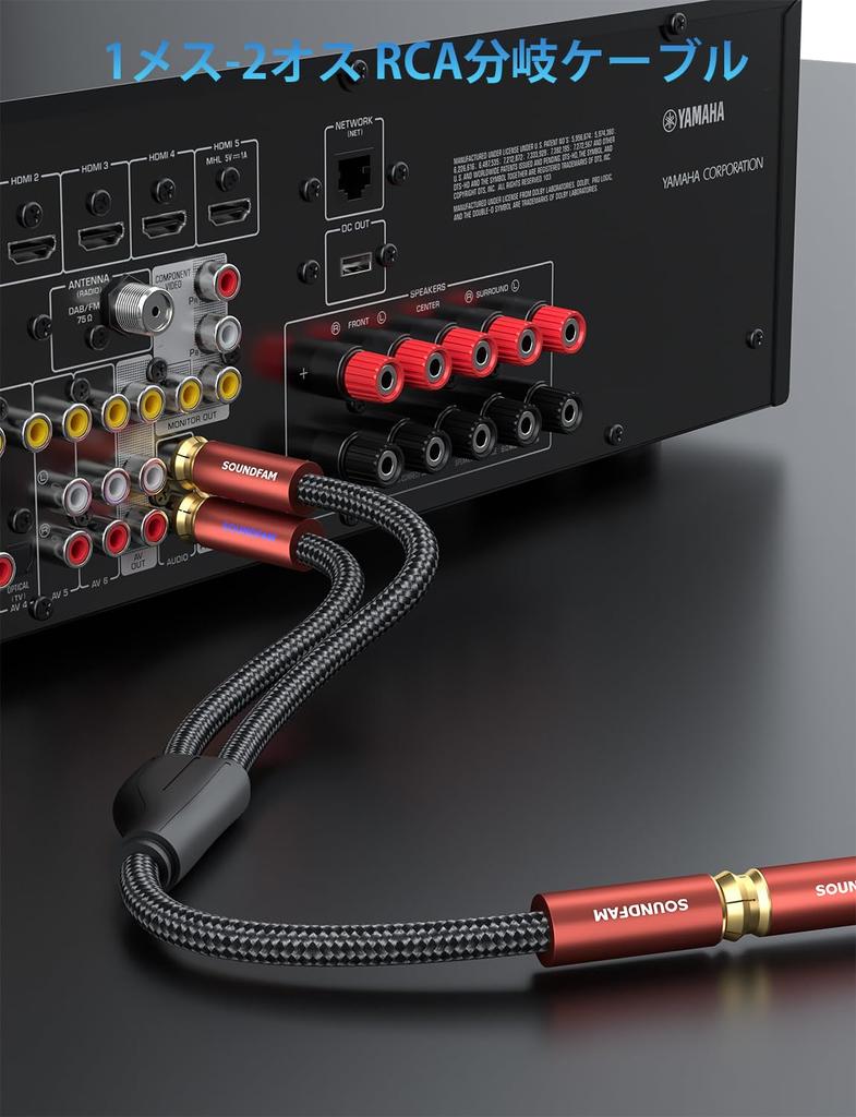 SOUNDFAM Coaxial RCA 1 Female to 2 Male RCA Distribution Cable Premium Subwoofer Splitter Cable Wine Red Female to 2 Male Cable, [Gold-Plated
