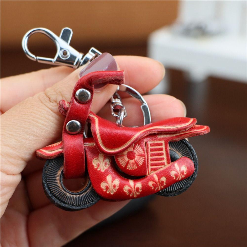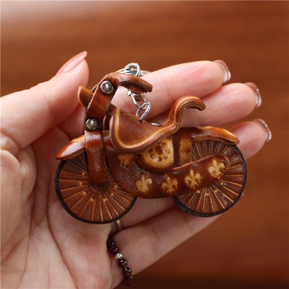 Cruiser Cowhide Motorcycle Keychain Retro Simulation Motorcycle Keyring Backpack Decoration