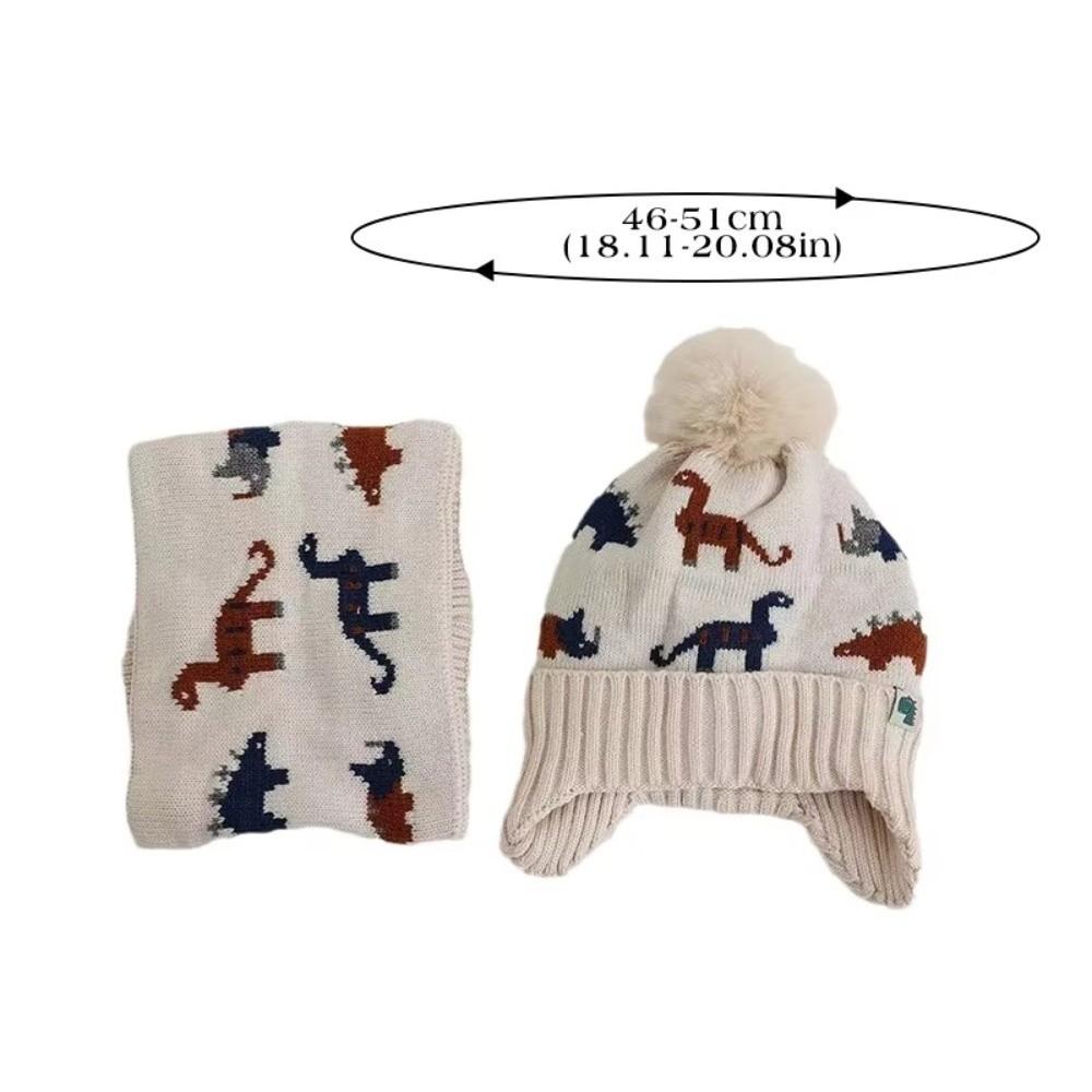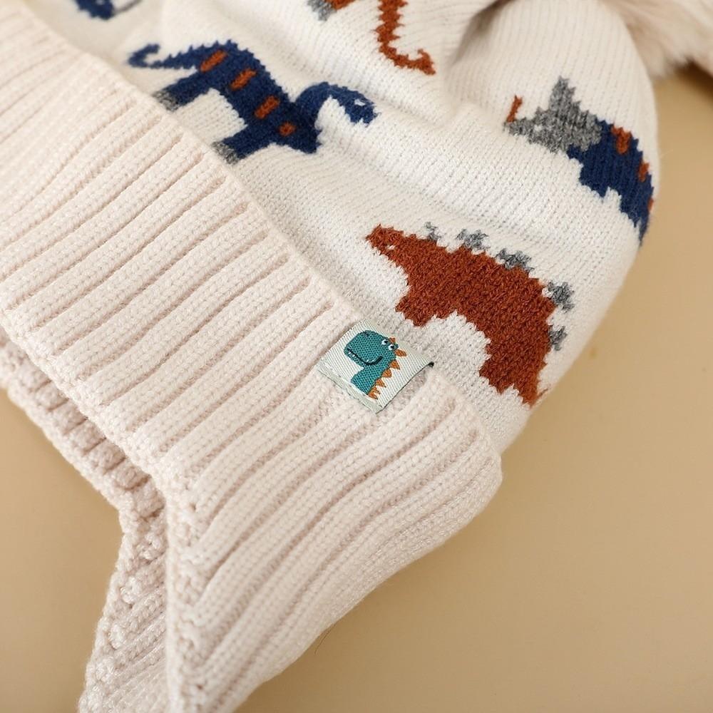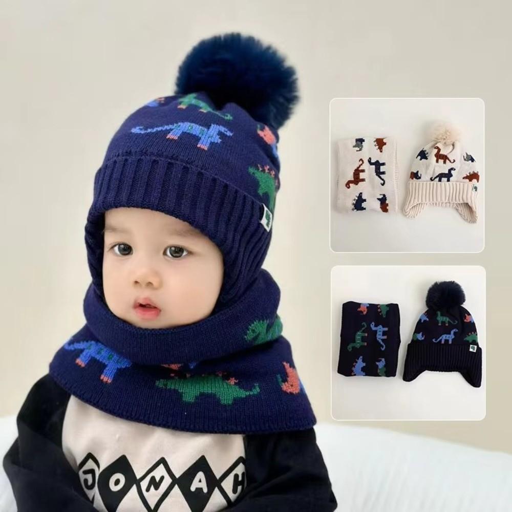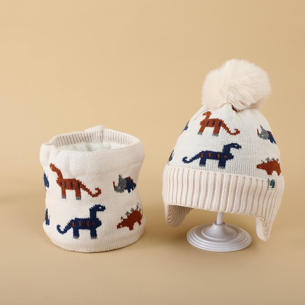 2Pcs Set Warm Baby Beanie Cap Cartoon Dinosaur Kids Ear Protection Hats Cute Scarf Set Winter