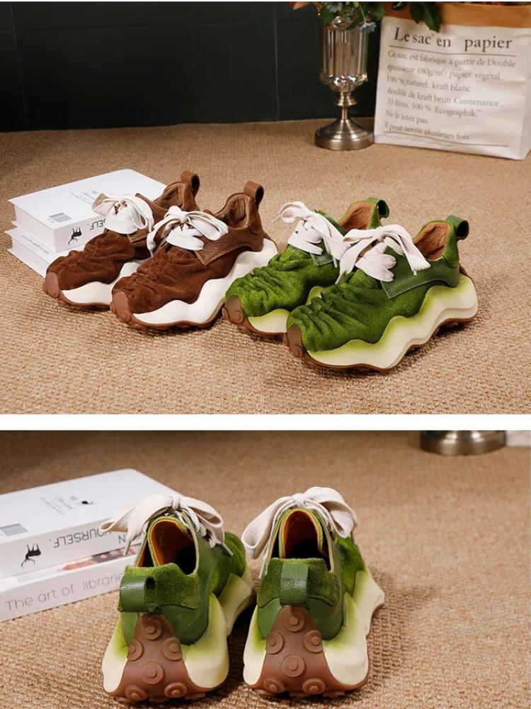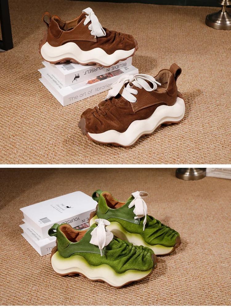 Johnature Женская обувь Натуральная кожа Замша Сращивание Толстая подошва Спортивный стиль Дышащая Шнуровка Повседневная обувь