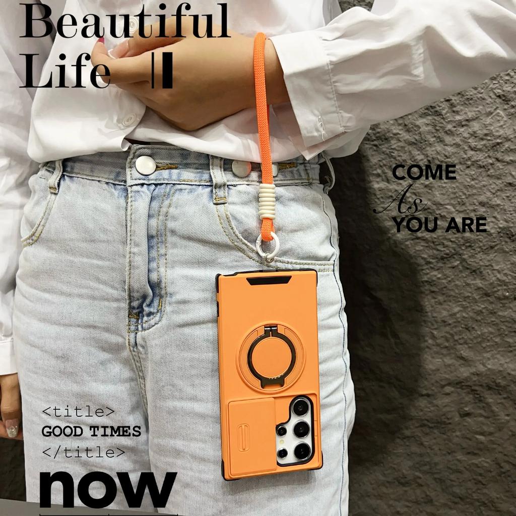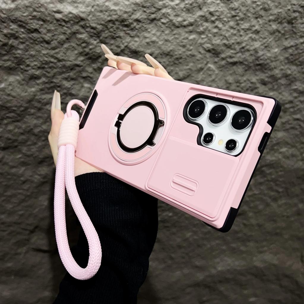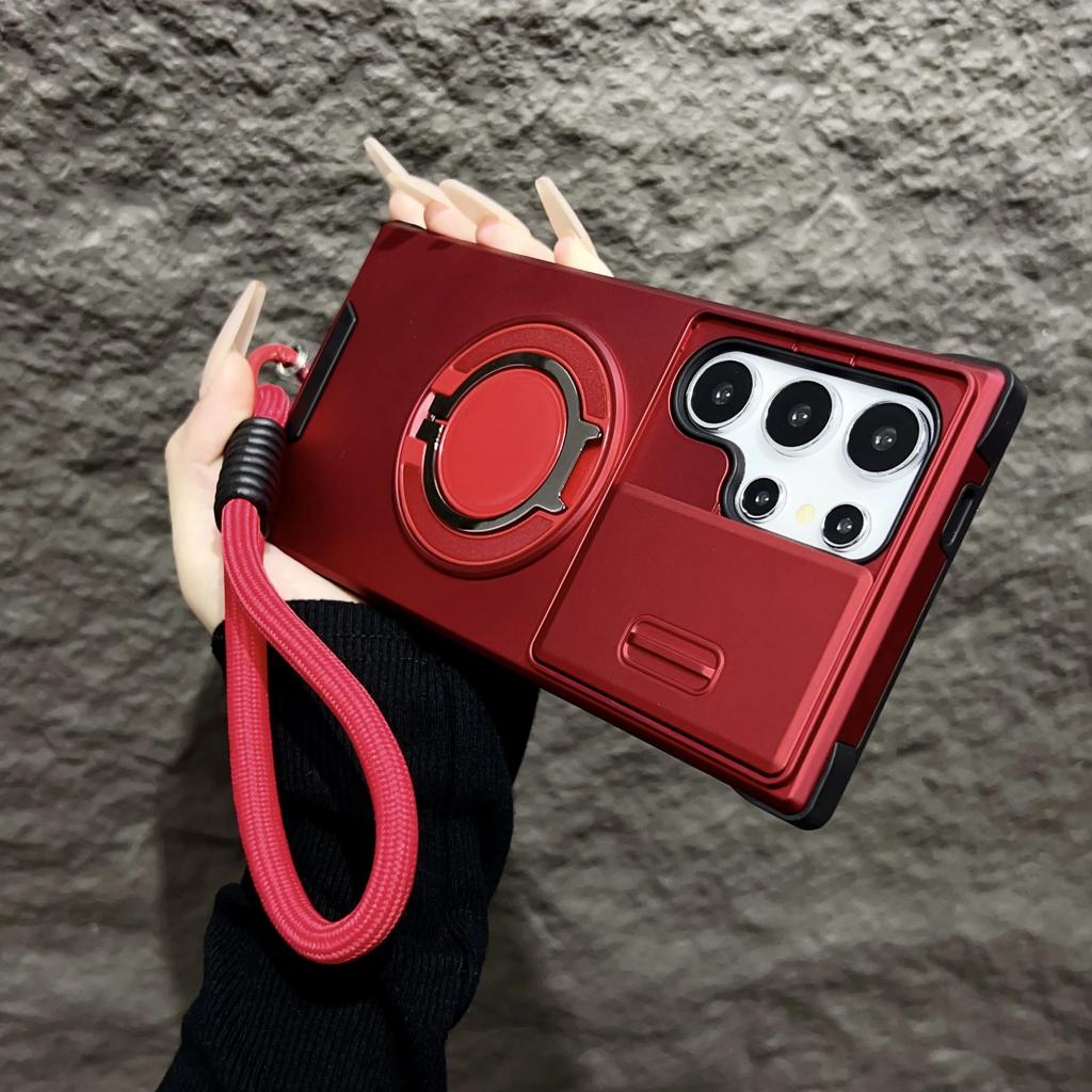 Чехол Armor Magnetic Bracket Case для Samsung Galaxy S25 S24 S23 S22 S21 Ultra Plus с выдвижным шнурком для камеры, защитный противоударный чехол