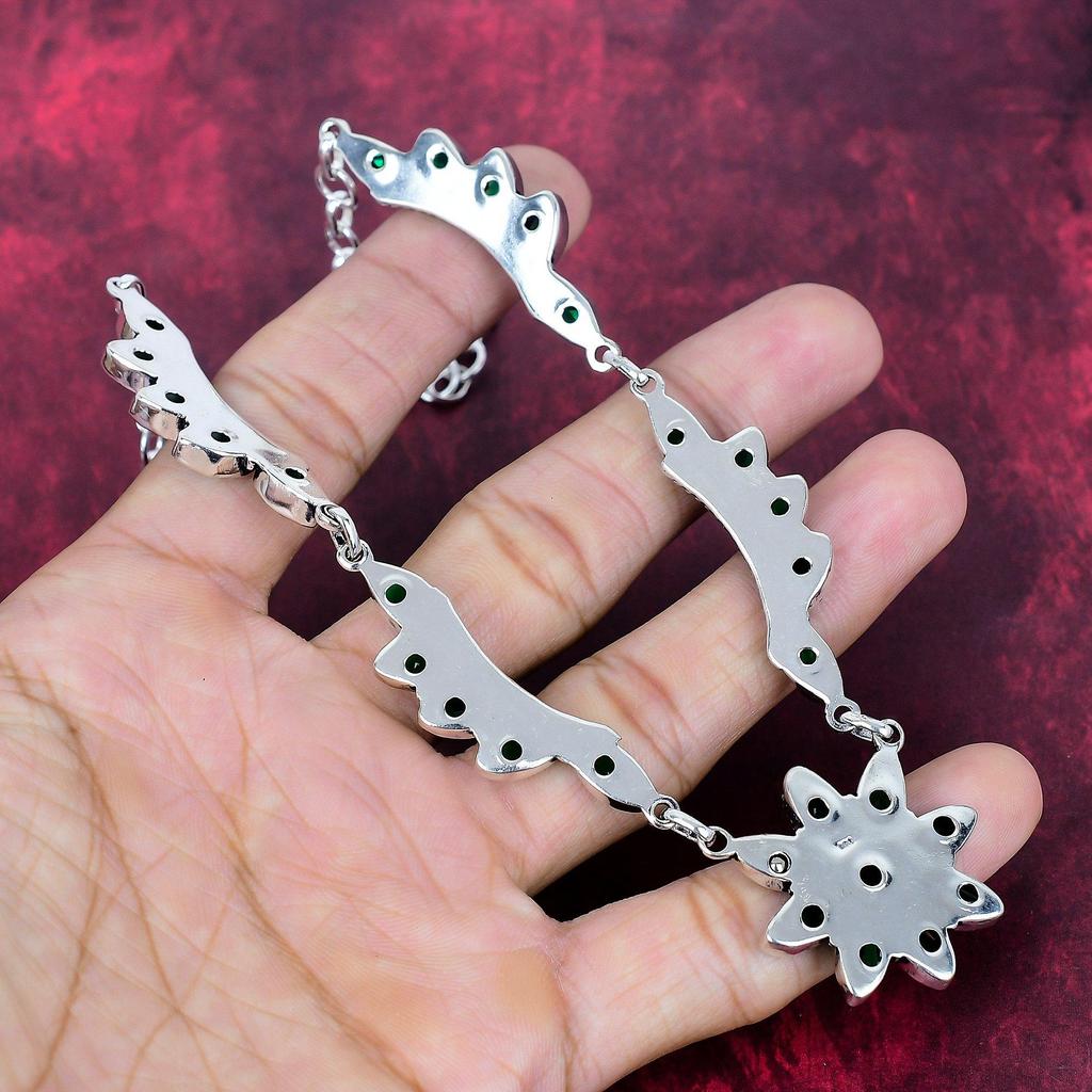 Колье из твердого стерлингового серебра 925 пробы с хромдиопсидом, колье с драгоценным камнем ручной работы, на День памяти
