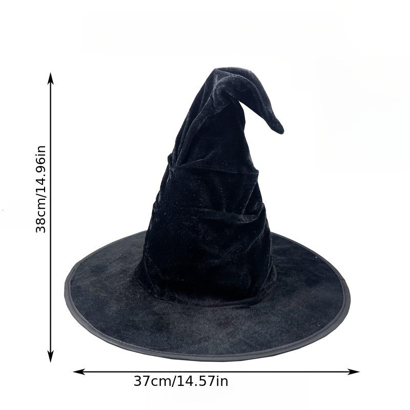 Черная бархатная шляпа ведьмы на Хэллоуин Стильный аксессуар для косплея с дизайном метлы, Идеально подходит для костюмированных вечеринок и тематических мероприятий, Без батарейки