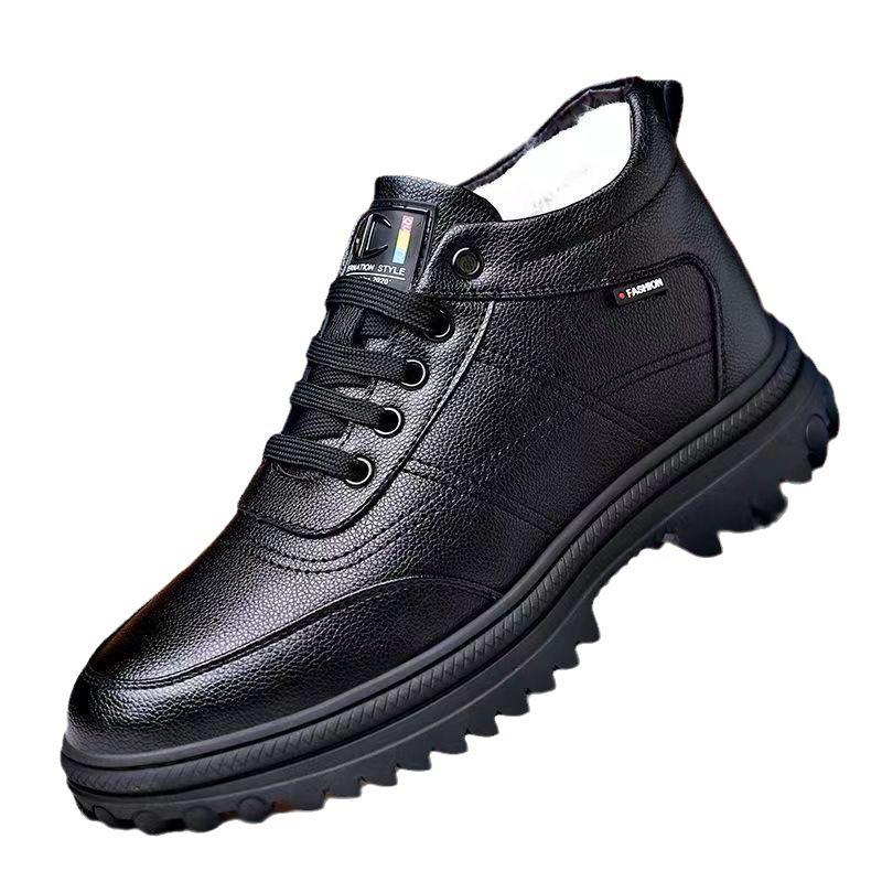 Мужские зимние утепленные хлопковые ботинки с толстой подошвой, нескользящие, из хлопка и кожи, удобные, универсальные рабочие сноубутсы