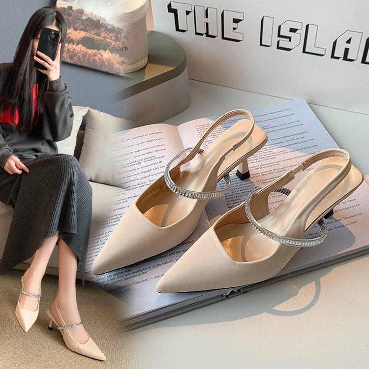 High heels sandals women's 2025 summer new thin heels Korean version one-word bag head rear empty rhinestone women's shoes