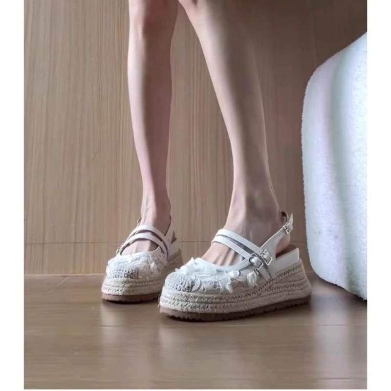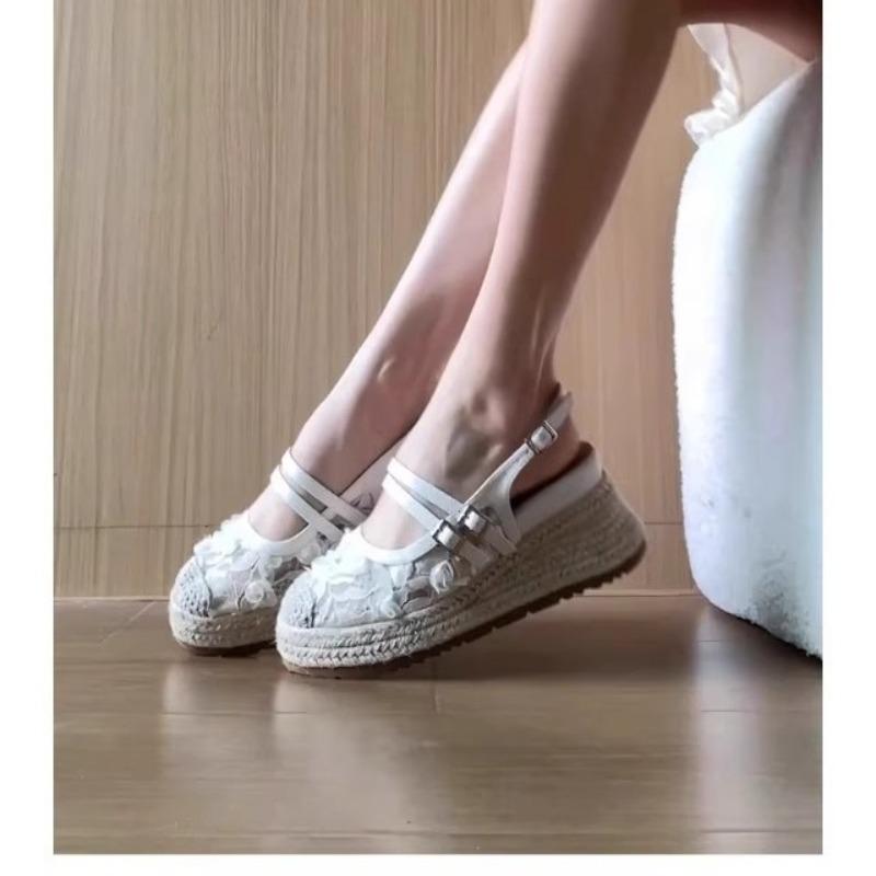 Нишевые балетки, одинарные туфли, сандалии с полым носком, кружевные цветы, полушлепанцы, летняя обувь, сандалии на платформе с высотой