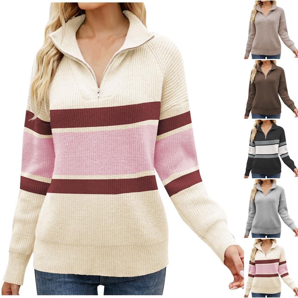 Женский И Зимний Вязаный Модный Однотонный Лоскутный Пуловер С Длинным Рукавом Свитер