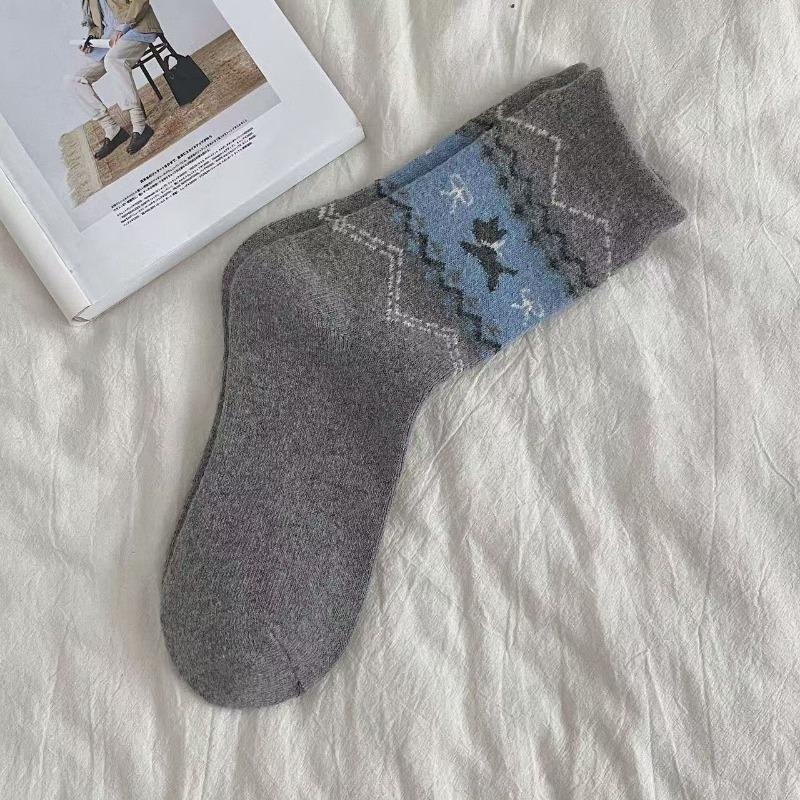 Женские осенне-зимние утолщенные теплые ретро милые носки-гольфы с бантом и мультяшным псом из шерсти