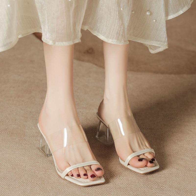H368-2 серебристые однословные туфли-шлепанцы на высоком каблуке прозрачный кристалл и летние сандалии однотонная обувь женская