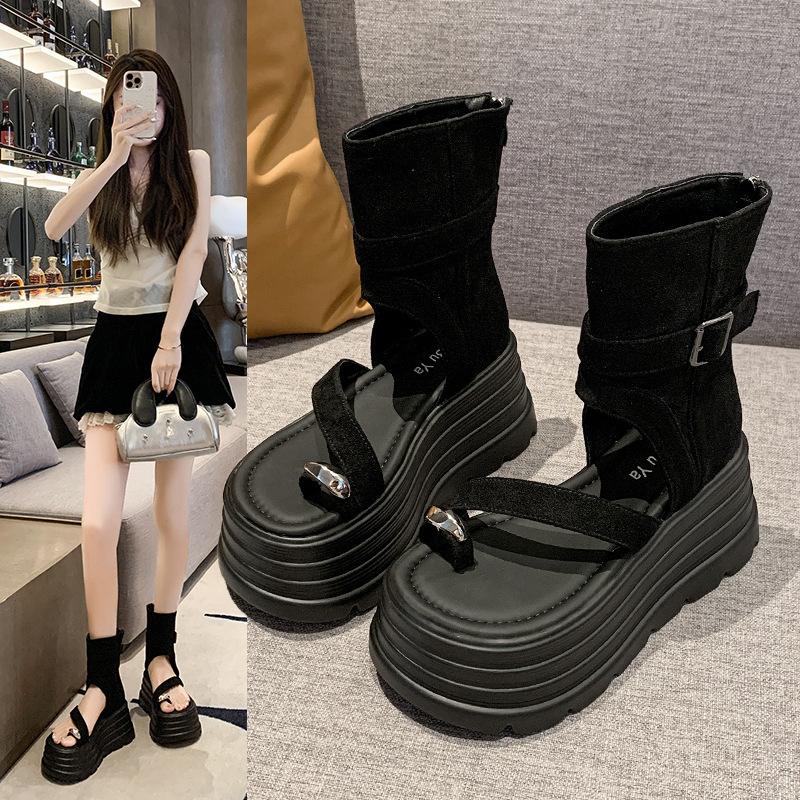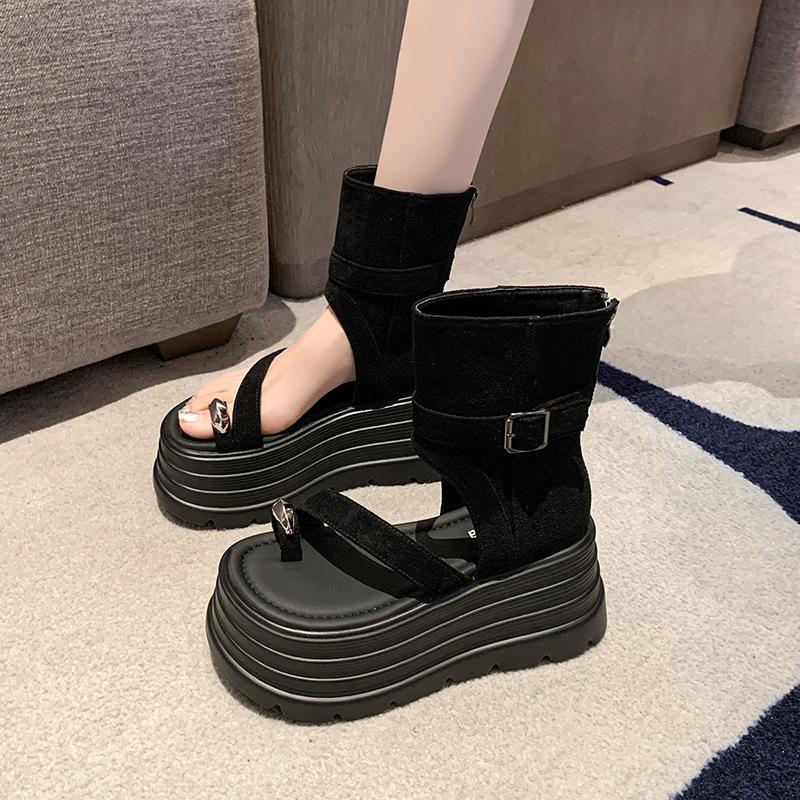 Foreign trade thick-soled Roman cool boots women's 2025 summer new fashion set toe high-top sandals rear zipper short boots