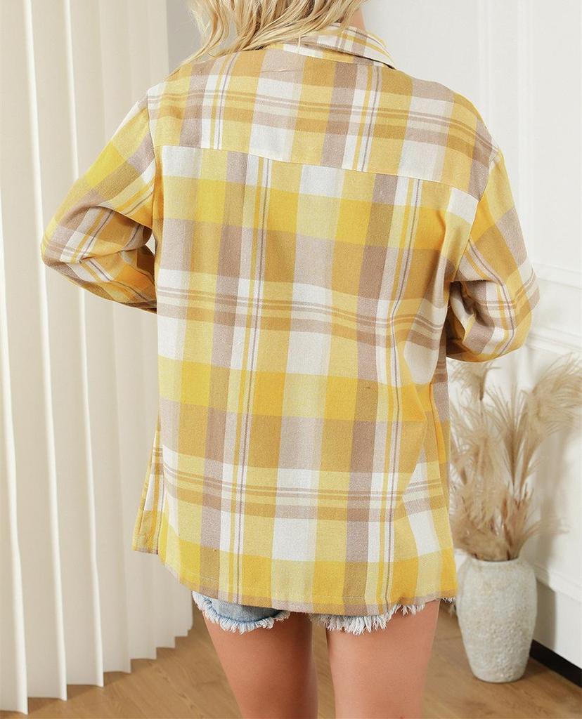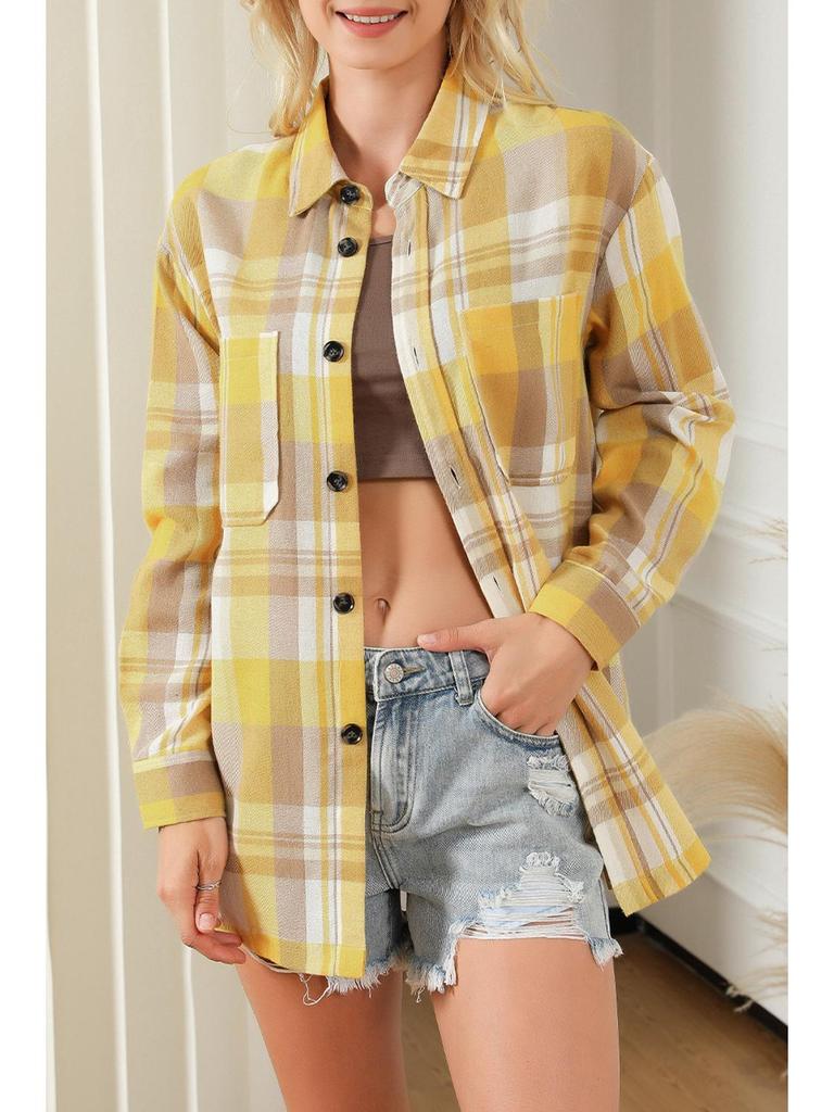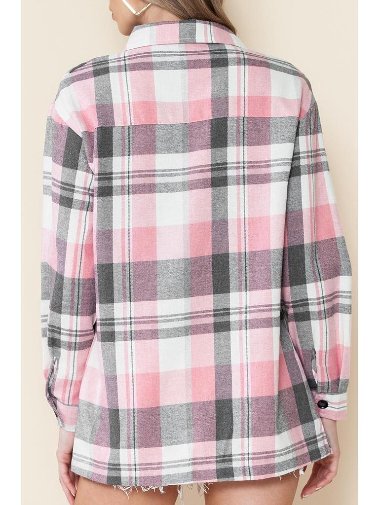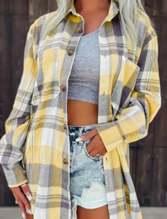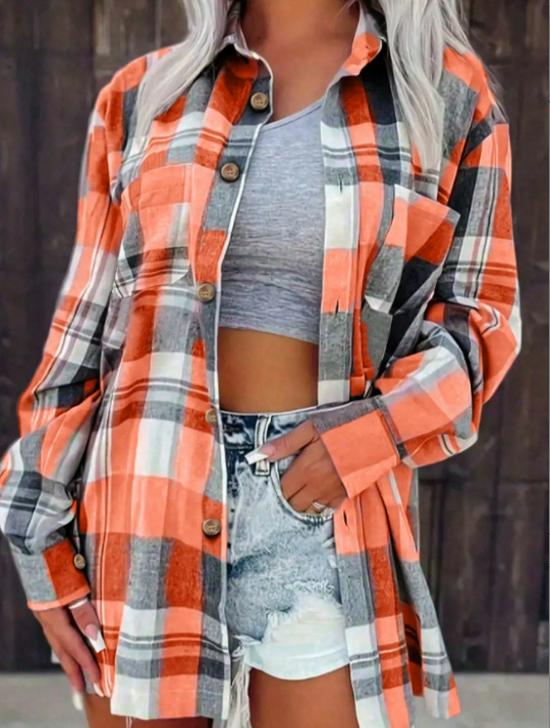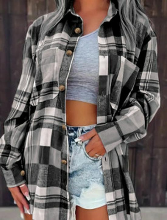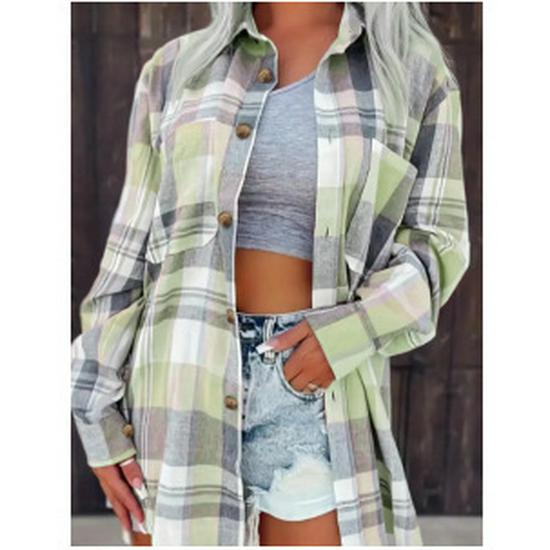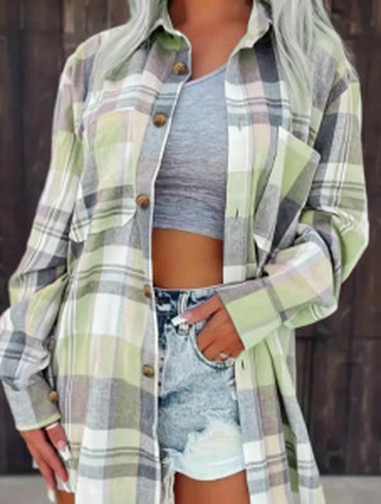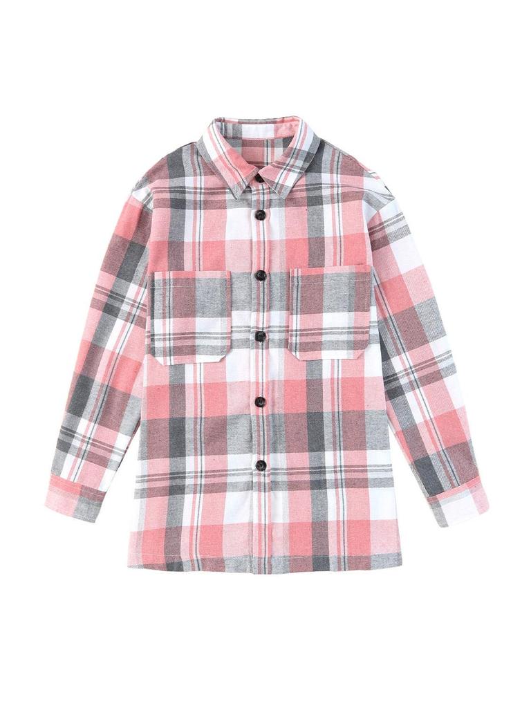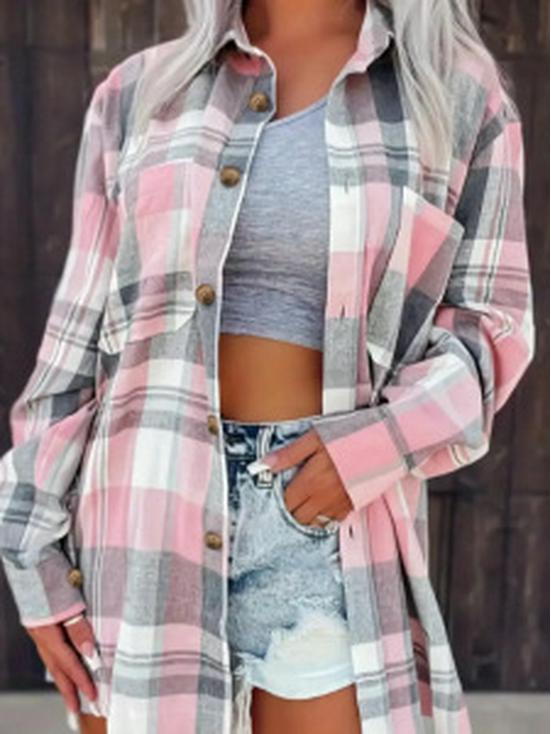 Женская розовая клетчатая рубашка-куртка свободного кроя с длинным рукавом 2024