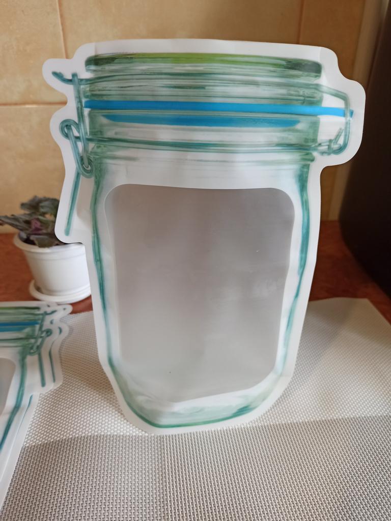 Зиппакеты в виде стеклянных баночек. Оригинальная и практичная задумка! Отличная находка для хранения сыпучих продуктов! У продавца представлены наборы зиппакетов разных расцветок и размеров. В моем наборе 4 зиппакет синего цвета, размером 25 х 15 см. Зиппакеты крепятся очень прочно, необходимо приложить небольшое усилие, чтобы открыть. Зиппакеты многоразового использования, можно мыть и снова использовать. Товар и продавца рекомендую всеми ручками! Спасибо продавцу и любимому Джум! Всем приятных и полезных покупок! Промокод на 5%: XEVDOYHQWS